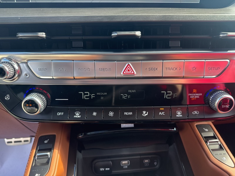 Step inside and you'll immediately feel the luxury. The Terracotta leather-trimmed seats provide both visual warmth and lasting comfort, while the heated and ventilated front seats, heated leather steering wheel, and three-zone climate control make every journey first-class. The HomeLink garage system, Smart Liftgate access, and memory mirror settings add seamless everyday practicality.