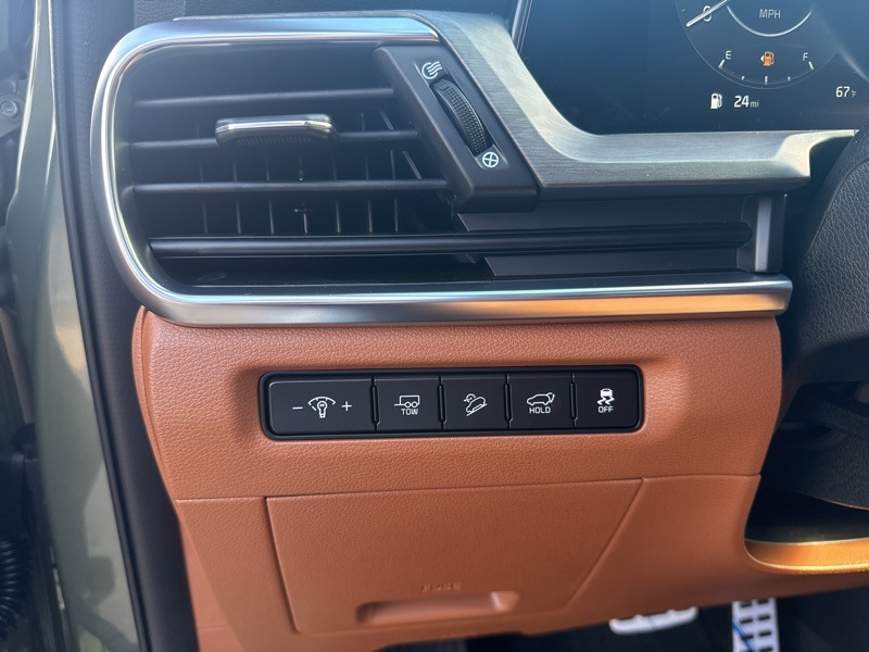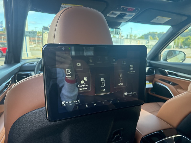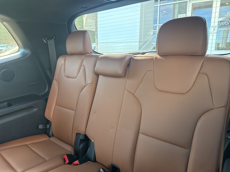 Inside, refinement reigns supreme. The Terracotta leather interior sets a warm, upscale tone, beautifully complemented by simulated wood and piano black trim. With heated and ventilated front seats, a heated leather steering wheel, and dual-zone climate control, every mile feels first-class. The Head-Up Display, HomeLink garage controls, and Smart Liftgate add everyday convenience, while the Rear Seat Entertainment system transforms long trips into fun family adventures.