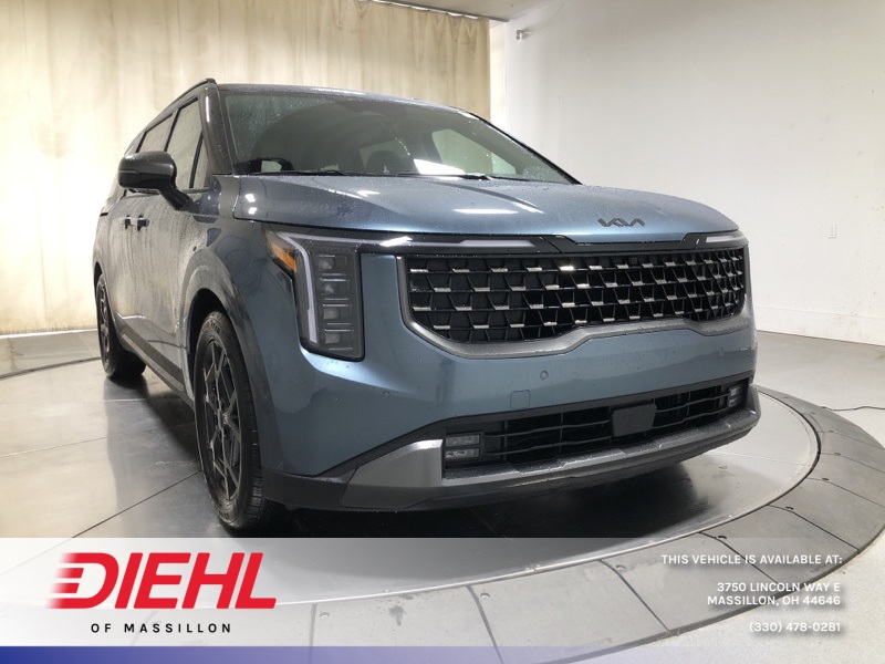 Astra Blue 2026 Kia Carnival SX Prestige FWD 8-Speed Automatic V6 **Alloy Wheels**, **Adaptive Cruise Control**, **Lane Keep Assist**, **Backup Camera**, **Android Auto/ Apple Carplay**, **Blind Spot Detection**, **Bluetooth**, **Heated Seats**, **Cooled Seats**, **Navigation**, **Sunroof**, **Remote Start**, 3.51 Axle Ratio, 3rd row seats: split-bench, 4-Wheel Disc Brakes, ABS brakes, Air Conditioning, Alloy wheels, AM/FM radio: SiriusXM, Apple CarPlay & Android Auto, Auto High-beam Headlights, Automatic temperature control, Brake assist, Bumpers: body-color, Compass, Delay-off headlights, Driver door bin, Driver vanity mirror, Dual front impact airbags, Dual front side impact airbags, Electronic Stability Control, Emergency communication system, Exterior Parking Camera Rear, Four wheel independent suspension, Front anti-roll bar, Front Bucket Seats, Front Center Armrest, Front dual zone A/C, Front fog lights, Front reading lights, Fully automatic headlights, Heated & Ventilated Front Bucket Seats, Heated door mirrors, Heated front seats, Illuminated entry, Knee airbag, Leather Shift Knob, Leather steering wheel, Low tire pressure warning, Memory seat, Navigation System, Occupant sensing airbag, Outside temperature display, Overhead airbag, Overhead console, Panic alarm, Passenger door bin, Passenger vanity mirror, Power 2nd-Row Moonroof, Power door mirrors, Power driver seat, Power Liftgate, Power moonroof, Power passenger seat, Power steering, Power windows, Radio: AM/FM/HD Audio System, Rain sensing wipers, Rear air conditioning, Rear anti-roll bar, Rear reading lights, Rear window defroster, Rear window wiper, Reclining 3rd row seat, Remote keyless entry, Security system, Speed control, Speed-sensing steering, Split folding rear seat, Spoiler, Steering wheel mounted audio controls, Tachometer, Telescoping steering wheel, Tilt steering wheel, Traction control, Trip computer, Turn signal indicator mirrors, Variably intermittent wipers, Ventilated front seats, Wheels: 7.5J x 19" Alloy Dark Edition.