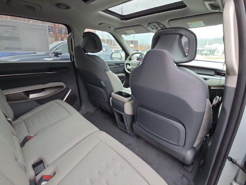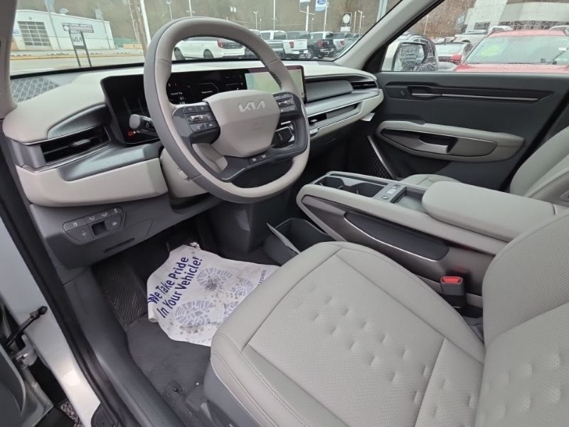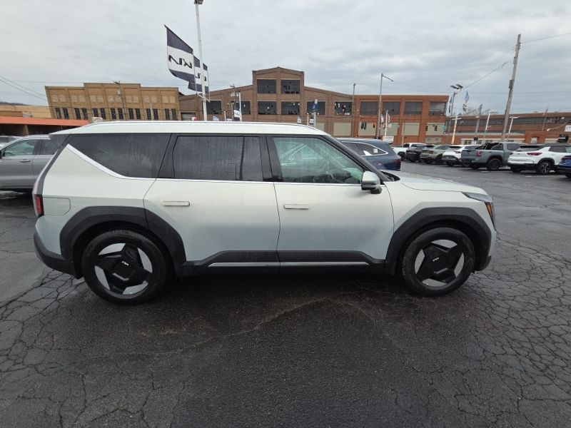 **BACK UP SENSOR**, *KEYLESS START*, *ALL WHEEL DRIVE*, **BACK UP CAMERA**, **ANDROID AUTO**, **APPLE CAR PLAY**, **COOLED SEATS**, **HEATED SEATS**, **HEATED STEERING WHEEL**, **LANE KEEP ASSIST**, **LEATHER**, **MEMORY SEATS**, **MOONROOF**, **NAVIGATION**, **POWER DRIVERS SEAT**, **POWER LIFTGATE**. Ivory Silver 2026 Kia EV9 Wind AWD 1-Speed Automatic Electric Motor