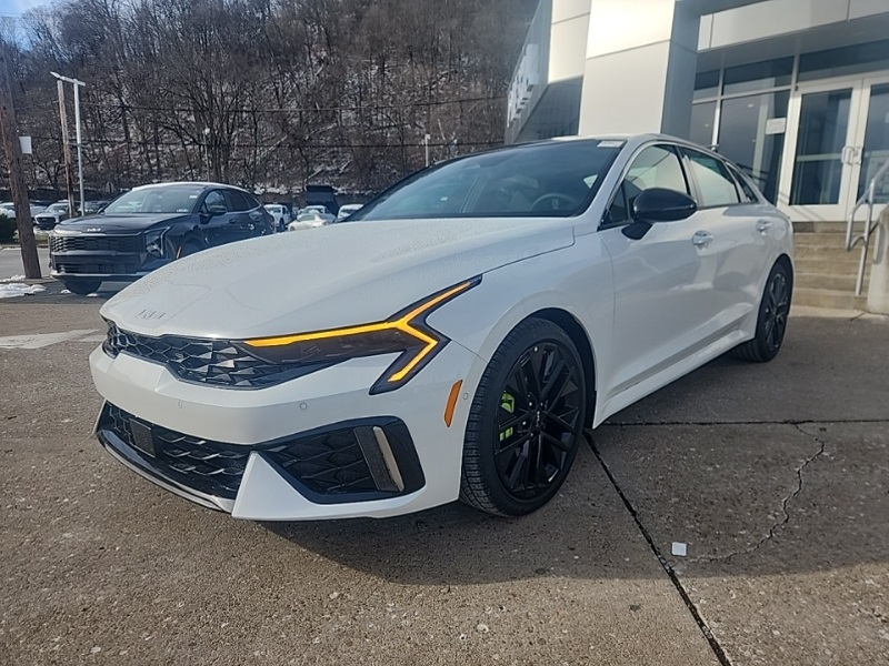 **BACK UP SENSOR**, *KEYLESS START*, **BACK UP CAMERA**, **ANDROID AUTO**, **APPLE CAR PLAY**, **HEATED SEATS**, **HEATED STEERING WHEEL**, **LANE KEEP ASSIST**, **LEATHER**, **MOONROOF**, **POWER DRIVERS SEAT**. Snow White Pearl 2026 Kia K5 GT FWD 8-Speed DCT I4