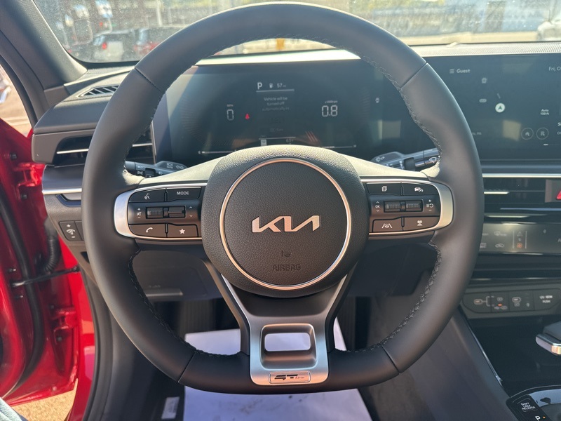 **BACK UP SENSOR**, *KEYLESS START*, **BACK UP CAMERA**, **ANDROID AUTO**, **APPLE CAR PLAY**, **HEATED SEATS**, **LANE KEEP ASSIST**, **LEATHER**, **MOONROOF**, **NAVIGATION**, **POWER DRIVERS SEAT**. Runway Red 2026 Kia K5 GT-Line FWD 8-Speed Automatic I4