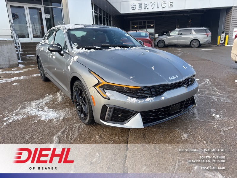 **BACK UP SENSOR**, *KEYLESS START*, **BACK UP CAMERA**, **ANDROID AUTO**, **APPLE CAR PLAY**, **HEATED SEATS**, **LANE KEEP ASSIST**, **LEATHER**, **MOONROOF**, **NAVIGATION**, **POWER DRIVERS SEAT**. Steel Matte Gray 2026 Kia K5 GT-Line FWD 8-Speed Automatic I4