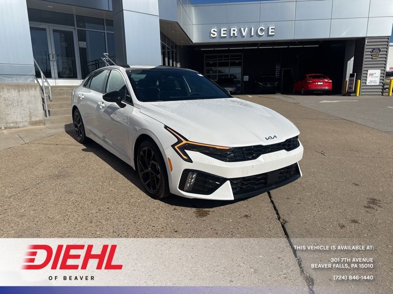 **BACK UP SENSOR**, *KEYLESS START*, *ALL WHEEL DRIVE*, **BACK UP CAMERA**, **ANDROID AUTO**, **APPLE CAR PLAY**, **HEATED SEATS**, **HEATED STEERING WHEEL**, **LANE KEEP ASSIST**, **LEATHER**, **MOONROOF**, **NAVIGATION**, **POWER DRIVERS SEAT**. Snow White Pearl 2026 Kia K5 GT-Line AWD 8-Speed Automatic I4