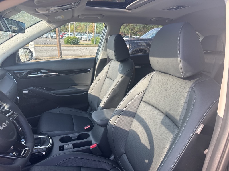 **BACK UP SENSOR**, *KEYLESS START*, *ALL WHEEL DRIVE*, **BACK UP CAMERA**, **ANDROID AUTO**, **APPLE CAR PLAY**, **COOLED SEATS**, **HEATED SEATS**, **HEATED STEERING WHEEL**, **LANE KEEP ASSIST**, **LEATHER**, **MOONROOF**, **NAVIGATION**, **POWER DRIVERS SEAT**, **PREMIUM AUDIO**, **POWER LIFTGATE**. Gravity Gray 2026 Kia Seltos SX AWD 8-Speed Automatic I4