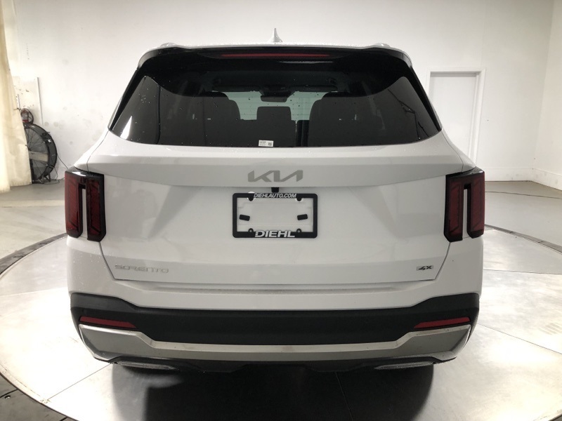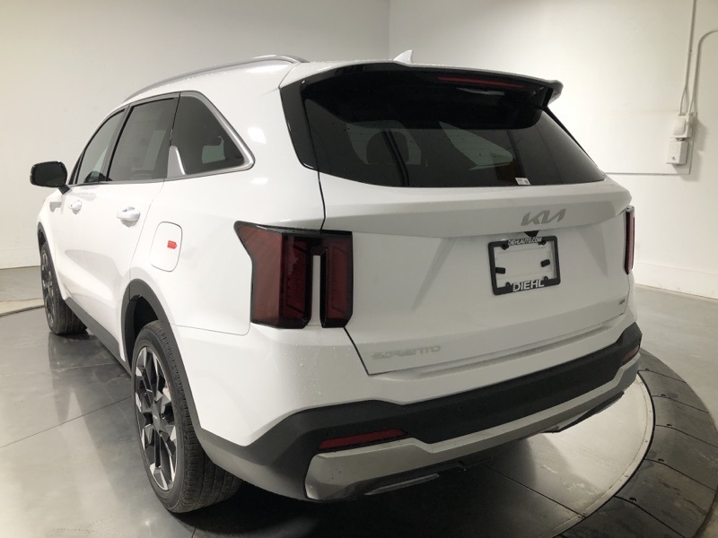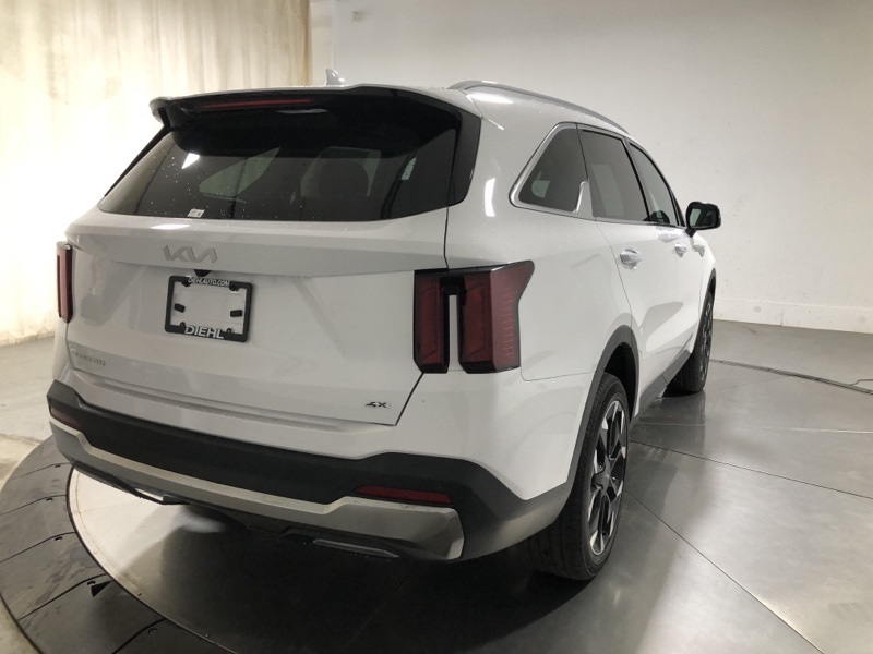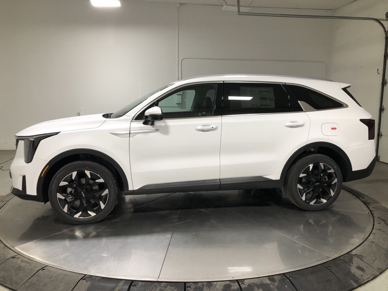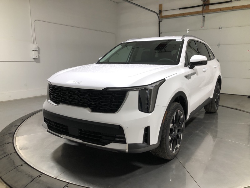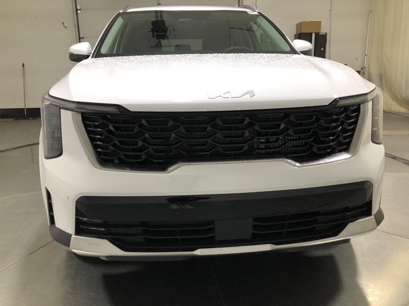 Glacial White Pearl 2026 Kia Sorento EX AWD 8 Speed Dual Clutch 2.5L I4 DGI Turbocharged DOHC 16V LEV3-SULEV30 281hp **All-Wheel-Drive!!**, **Alloy Wheels**, **Adaptive Cruise Control**, **Lane Keep Assist**, **Backup Camera**, **Android Auto/ Apple Carplay**, **Blind Spot Detection**, **Bluetooth**, **Heated Seats**, **Navigation!!**, **Remote Start**, AWD, 3rd row seats: split-bench, 4-Wheel Disc Brakes, 6 Speakers, ABS brakes, Air Conditioning, All Weather Floor Mats, Alloy wheels, AM/FM radio: SiriusXM, Apple CarPlay & Android Auto, Auto High-beam Headlights, Auto-dimming Rear-View mirror, Automatic temperature control, Brake assist, Bumpers: body-color, Delay-off headlights, Driver door bin, Driver vanity mirror, Dual front impact airbags, Dual front side impact airbags, Electronic Stability Control, Emergency communication system: 911 Connect, Exterior Parking Camera Rear, Four wheel independent suspension, Front anti-roll bar, Front Bucket Seats, Front Center Armrest, Front dual zone A/C, Front fog lights, Front reading lights, Fully automatic headlights, Heated door mirrors, Heated Front Bucket Seats, Heated front seats, Illuminated entry, Knee airbag, Leather Shift Knob, Leather steering wheel, Low tire pressure warning, Navigation System, Occupant sensing airbag, Outside temperature display, Overhead airbag, Overhead console, Panic alarm, Passenger door bin, Passenger vanity mirror, Power door mirrors, Power driver seat, Power Liftgate, Power passenger seat, Power steering, Power windows, Radio data system, Radio: AM/FM Standard Sound System, Rear anti-roll bar, Rear reading lights, Rear seat center armrest, Rear side impact airbag, Rear window defroster, Rear window wiper, Remote keyless entry, Security system, Speed control, Speed-sensing steering, Split folding rear seat, Spoiler, Steering wheel mounted audio controls, SynTex Artificial Leather Seat Trim, Tachometer, Telescoping steering wheel, Tilt steering wheel, Traction control, Trip computer, Turn signal indicator mirrors, Variably intermittent wipers, Wheels: 20" Machine-Finished Gloss Black Alloy.