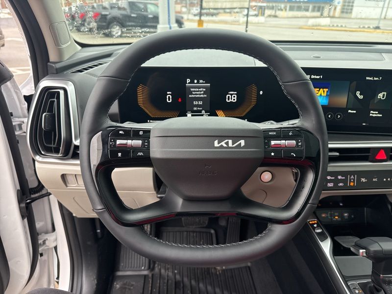**BACK UP SENSOR**, *KEYLESS START*, **3RD ROW SEATING**, *ALL WHEEL DRIVE*, **BACK UP CAMERA**, **ANDROID AUTO**, **APPLE CAR PLAY**, **HEATED SEATS**, **LANE KEEP ASSIST**, AWD. Glacial White Pearl 2026 Kia Sorento S AWD 8-Speed Automatic 2.5L I4 DGI DOHC 16V LEV3-SULEV30 191hp