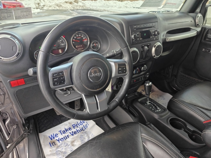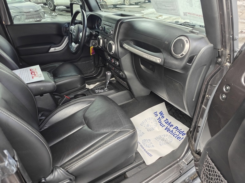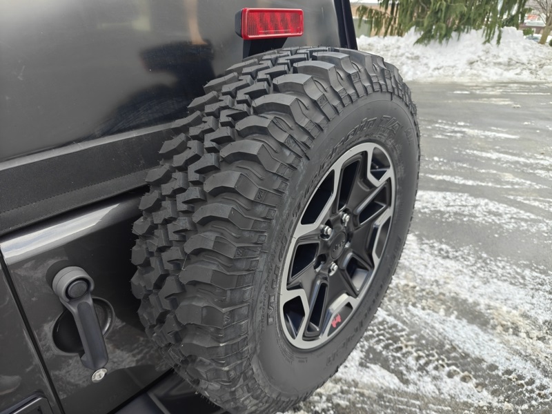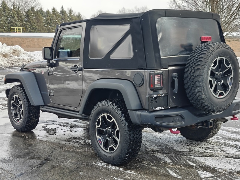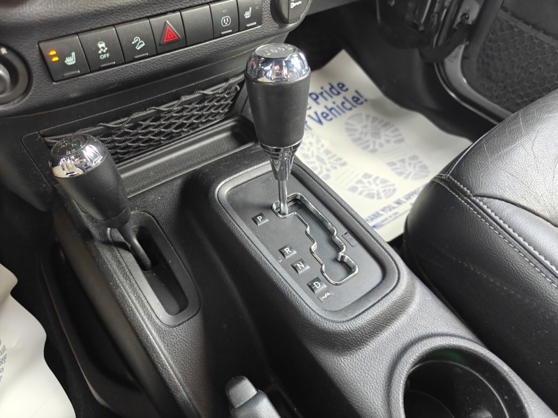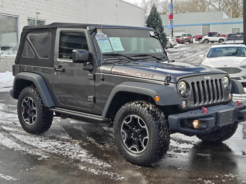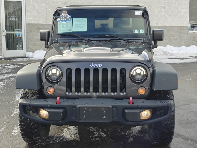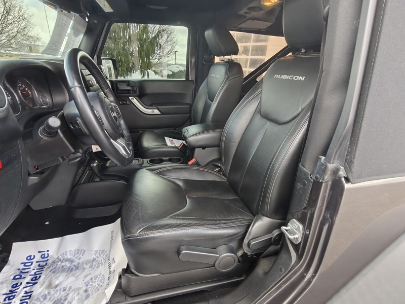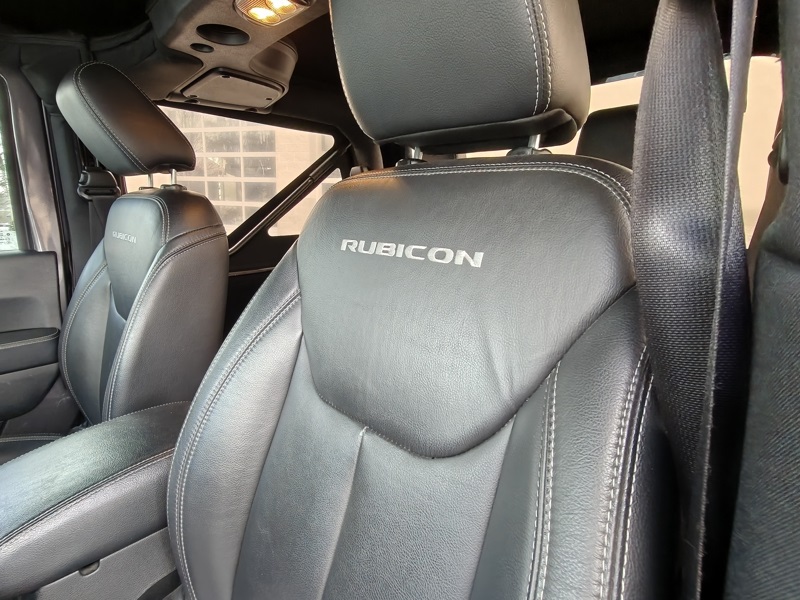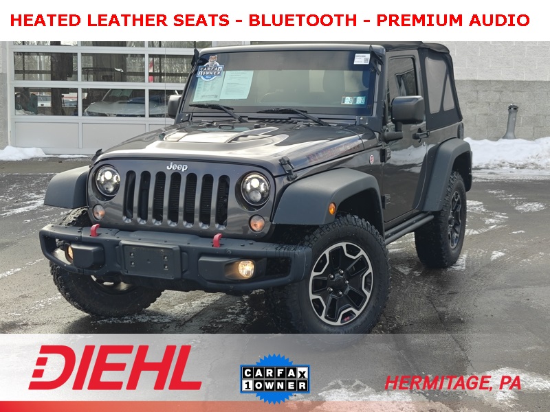 **ONE OWNER**, **CLEAN CARFAX**, **FOUR WHEEL DRIVE**, **HEATED SEATS**, **BLUETOOTH**, **PREMIUM WHEELS**, **PREMIUM AUDIO**, Accent Stitching, Alpine 9-Speaker w/All Weather Subwoofer, Auto-Dimming Mirror w/Reading Lamp, Black/Chrome Screws Fuel Filler Door, Chrome/Leather Wrapped Shift Knob, Connectivity Group, Deep Tint Sunscreen Windows, Driver Height Adjuster Seat, Front 1-Touch Down Power Windows, Front Seat Back Map Pockets, Heated Front Seats, Hood w/Power Dome, Jeep Trail Rated Kit, Leather Trimmed Bucket Seats, Leather Wrapped Steering Wheel, Low Gloss Black Wrangler Decal, MOPAR Slush Mats, Power Convenience Group, Power Heated Mirrors, Power Locks, Premium Black Sunrider Soft Top, Premium EVIC Message Center, Quick Order Package 24J Rubicon Hard Rock, Red Front & Rear Tow Hooks, Red Trail Rated Badge, Remote Keyless Entry, Remote USB Port, Rubicon Hard Rock Package, Rubicon Hood Decal, Security Alarm, Silver Interior Accents, Steel Front Bumper, Steel Rear Bumper, Sunrider Soft Top, Tire Pressure Monitoring Display, Uconnect Voice Command w/Bluetooth, Vehicle Information Center, Wheels: 17" x 7.5" Polished Semi-Gloss Black.