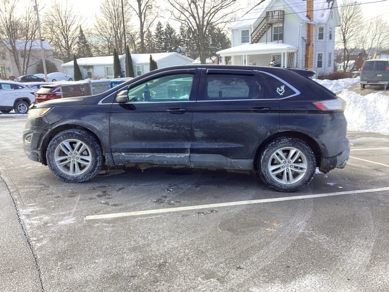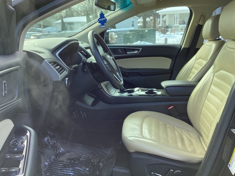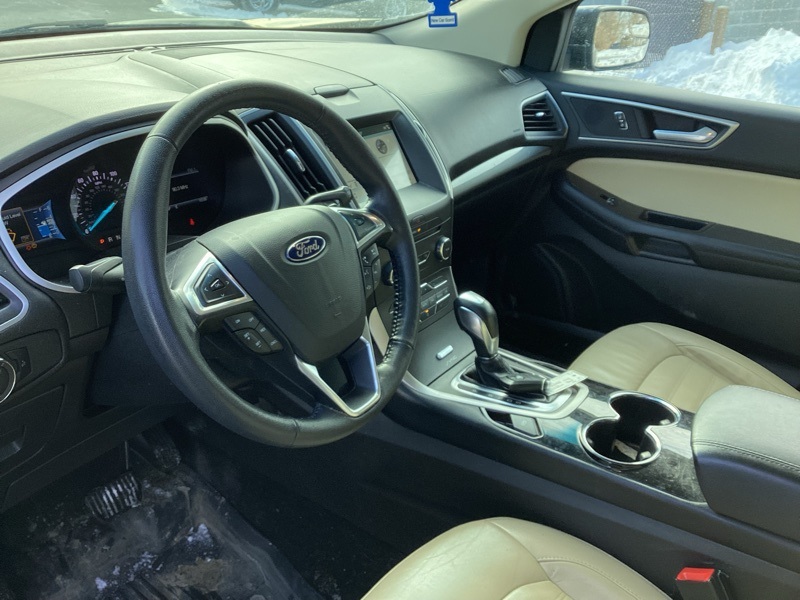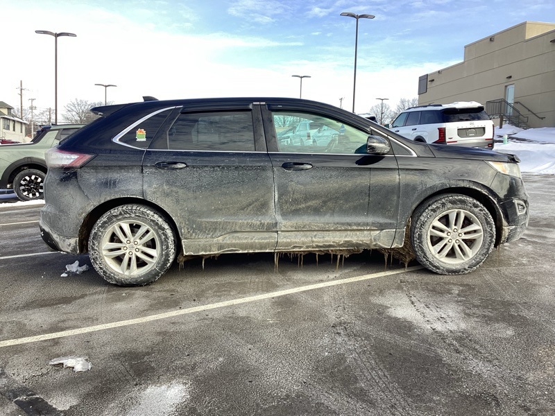 AWD, 4-Wheel Disc Brakes, 6 Speakers, ABS brakes, Air Conditioning, Alloy wheels, AM/FM radio: SiriusXM, AM/FM Stereo w/Single CD, Auto-dimming Rear-View mirror, Automatic temperature control, Axle Ratio: TBD, Brake assist, Bumpers: body-color, CD player, Compass, Delay-off headlights, Driver door bin, Driver vanity mirror, Dual front impact airbags, Dual front side impact airbags, Electronic Stability Control, Emergency communication system: SYNC 3 911 Assist, Equipment Group 201A, Exterior Parking Camera Rear, Four wheel independent suspension, Front anti-roll bar, Front Bucket Seats, Front Center Armrest w/Storage, Front dual zone A/C, Front reading lights, Fully automatic headlights, Heated door mirrors, Illuminated entry, Knee airbag, Leather Shift Knob, Leather-Trimmed Heated Bucket Seats, Low tire pressure warning, Occupant sensing airbag, Outside temperature display, Overhead airbag, Overhead console, Panic alarm, Passenger door bin, Passenger vanity mirror, Power door mirrors, Power driver seat, Power passenger seat, Power steering, Power windows, Premium 9 Speaker Audio, Rear anti-roll bar, Rear Parking Sensors, Rear reading lights, Rear seat center armrest, Rear window defroster, Rear window wiper, Remote keyless entry, SiriusXM Radio, Speed control, Speed-Sensitive Wipers, Split folding rear seat, Spoiler, Steering wheel mounted audio controls, SYNC, SYNC 3, Tachometer, Telescoping steering wheel, Tilt steering wheel, Traction control, Trip computer, Turn signal indicator mirrors, Unique Cloth Bucket Seats, Variably intermittent wipers, Wheels: 18" Sparkle Silver-Painted Aluminum. Shadow Black 2017 Ford Edge SEL AWD 6-Speed Automatic EcoBoost 2.0L I4 GTDi DOHC Turbocharged VCT