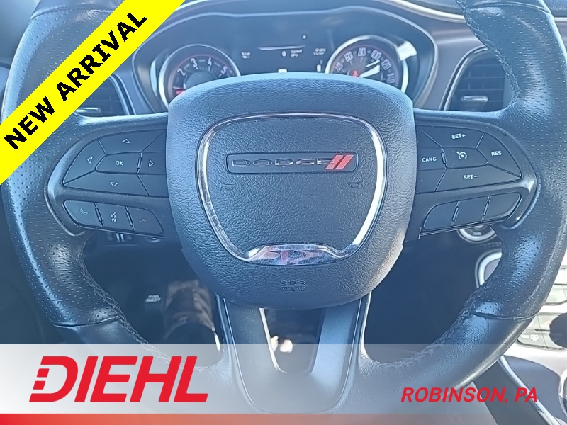 The R T trim brings the hardware that matters. Sport suspension, performance brakes, active exhaust, and wide 20 inch alloy wheels give this Challenger the stance and handling to match its power. It looks aggressive from every angle, from the bold front end to the rear spoiler, and it still manages to feel solid and composed whether you are cruising or leaning into the throttle.