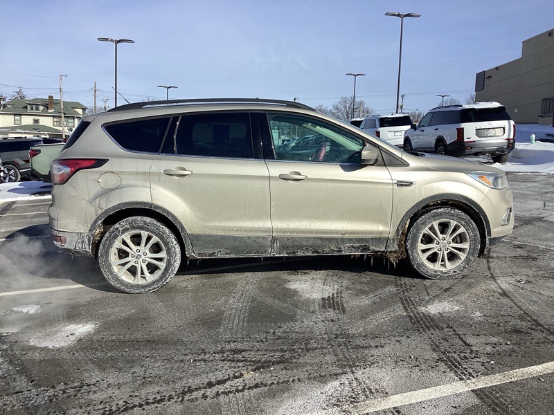 4WD, 3.51 Axle Ratio, 4-Wheel Disc Brakes, 6 Speakers, ABS brakes, Air Conditioning, Alloy wheels, AM/FM radio: SiriusXM, Automatic temperature control, Brake assist, Bumpers: body-color, CD player, Compass, Delay-off headlights, Driver door bin, Driver vanity mirror, Dual front impact airbags, Dual front side impact airbags, Electronic Stability Control, Emergency communication system: 911 Assist, Equipment Group 200A, Exterior Parking Camera Rear, Four wheel independent suspension, Front anti-roll bar, Front Bucket Seats, Front Center Armrest, Front dual zone A/C, Front fog lights, Front reading lights, Fully automatic headlights, Heated front seats, Heated Unique Cloth Front Bucket Seats, Illuminated entry, Knee airbag, Low tire pressure warning, Occupant sensing airbag, Outside temperature display, Overhead airbag, Overhead console, Panic alarm, Passenger door bin, Passenger vanity mirror, Power door mirrors, Power driver seat, Power steering, Power windows, Radio data system, Radio: AM/FM Stereo w/Single-CD/MP3 Player, Rear anti-roll bar, Rear seat center armrest, Rear window defroster, Rear window wiper, Remote keyless entry, Roof rack: rails only, Security system, Speed control, Speed-sensing steering, Split folding rear seat, Steering wheel mounted audio controls, SYNC Communications & Entertainment System, Tachometer, Telescoping steering wheel, Tilt steering wheel, Traction control, Trip computer, Variably intermittent wipers, Wheels: 17" Sparkle Silver-Painted Aluminum. White Gold 2018 Ford Escape SE 4WD 6-Speed Automatic EcoBoost 2.0L I4 GTDi DOHC Turbocharged VCT