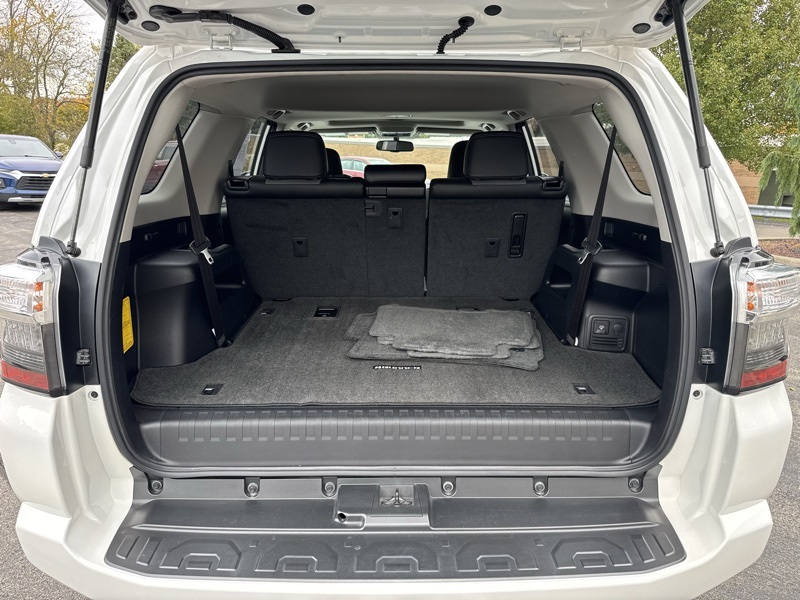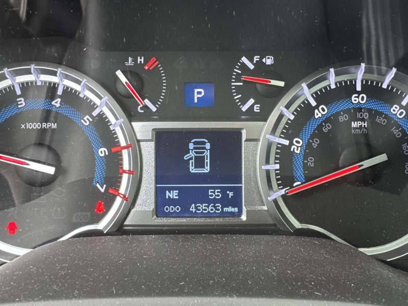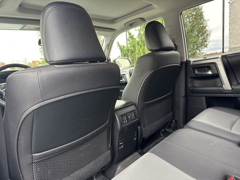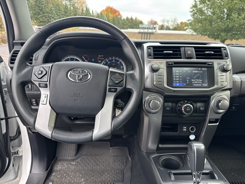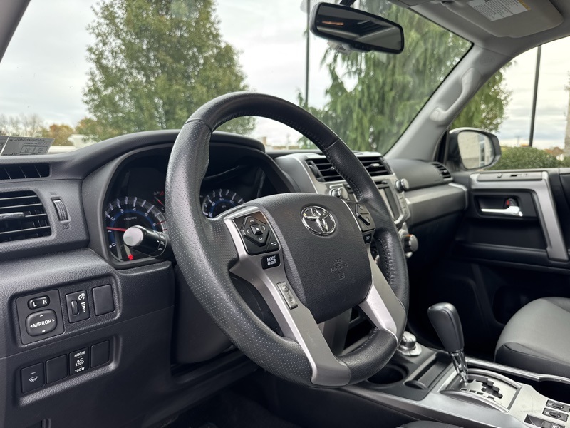 2018 Toyota 4Runner SR5 4D Sport Utility 4WD 4.0L V6 SMPI DOHC 5-Speed Automatic with Overdrive 4WD, Black Graphite w/Softex Synthetic Leather Seat Trim, 17" x 7.0" 6-Spoke Alloy Wheels, 3.727 Axle Ratio, 4-Wheel Disc Brakes, 8 Speakers, ABS brakes, Air Conditioning, Alloy wheels, AM/FM radio: SiriusXM, Anti-whiplash front head restraints, Brake assist, Bumpers: body-color, CD player, Driver door bin, Driver vanity mirror, Dual front impact airbags, Dual front side impact airbags, Electronic Stability Control, Emergency communication system: Safety Connect, Exterior Parking Camera Rear, Front anti-roll bar, Front Bucket Seats, Front Center Armrest, Front fog lights, Front reading lights, Front wheel independent suspension, Heated door mirrors, Illuminated entry, Knee airbag, Leather Shift Knob, Leather steering wheel, Low tire pressure warning, Navigation System, Occupant sensing airbag, Outside temperature display, Overhead airbag, Overhead console, Panic alarm, Passenger door bin, Passenger vanity mirror, Power door mirrors, Power driver seat, Power steering, Power windows, Rear anti-roll bar, Rear seat center armrest, Rear window defroster, Rear window wiper, Remote keyless entry, Roof rack: rails only, Security system, Speed control, Speed-sensing steering, Split folding rear seat, Spoiler, Steering wheel mounted audio controls, Tachometer, Telescoping steering wheel, Tilt steering wheel, Traction control, Trip computer, and Variably intermittent wipers. Odometer is 44010 miles below market average!