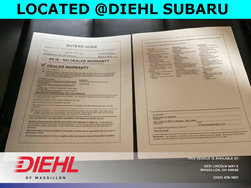 3.5L V6 DOHC 24V, Memory seat, Navigation System, Power driver seat, Power Liftgate, Power moonroof. 2018 Toyota Highlander Hybrid Limited CARFAX One-Owner.