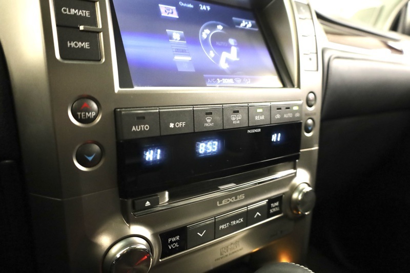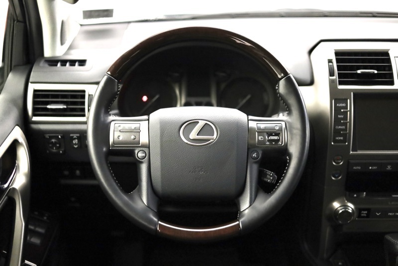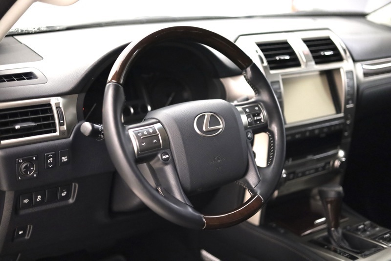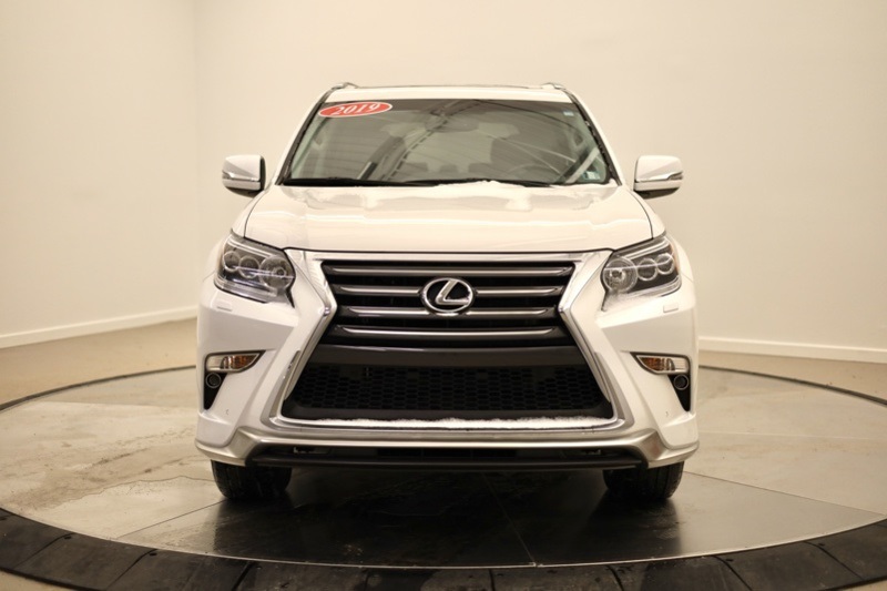 **LEATHER**, **MOONROOF**, **BACK-UP CAMERA**, **HEATED AND COOLED FRONT SEATS**, **ONE OWNER**, **GREAT SERVICE HISTORY**, **SPORT PACKAGE**, **18" GUNMETAL ALLOY WHEELS**, **THREE ROW SEATING**, **SECOND ROW BUCKETS**, **HEATED SECOND ROW**, **BLIND SPOT DETECTION**, **MEMORY DRIVER SEAT**, **HEATED STEERING WHEEL**, **3 ZONE CLIMATE CONTROL**, **MARK LEVINSON PREMIUM SOUND**, **FACTORY NAVIGATION**, 4-Wheel Disc Brakes, ABS brakes, AM/FM Stereo w/CD/DVD Player, Anti-whiplash front head restraints, Dual front impact airbags, Dual front side impact airbags, Emergency communication system, Front anti-roll bar, Front wheel independent suspension, Knee airbag, Low tire pressure warning, Mark Levinson Premium Surround Sound Audio, Occupant sensing airbag, Overhead airbag, Rear anti-roll bar, Rear side impact airbag. CARFAX One-Owner. Starfire Pearl 2019 Lexus GX 460 Luxury 4WD 6-Speed Automatic with Sequential Shift ECT 4.6L V8 DOHC Dual VVT-i 32V