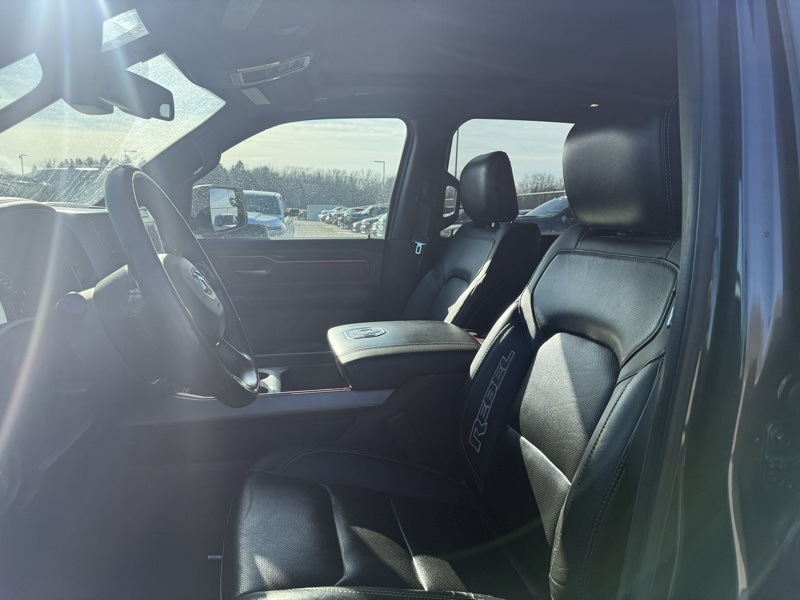 **CARFAX ONE OWNER**, **BLUETOOTH HANDS FREE PHONE**, **LEATHER**, **BACK-UP CAMERA**, **PANORAMIC MOONROOF**, **FACTORY BRAKE CONTROLLER**, **5.7L V8 HEMI**, **SPRAY IN LINER**, **HARMON KARDON PREMIUM SOUND**, **12" TOUCHSCREEN RADIO**, **FACTORY NAVIGATION**, **FRONT AND REAR PARKING SONAR**, **3.92 REAR AXLE**, **APPLE CARPLAY / ANDROID AUTO**, **BLIND SLOT DETECTION**, 1-Yr SiriusXM Guardian Trial, 115V Auxiliary Rear Power Outlet, 12" Touchscreen Display, 2 USB Full Function/Charge Only Media Hub, 3.92 Rear Axle Ratio, 4-Wheel Disc Brakes, 48V Belt Starter Generator, 5-Year SiriusXM Traffic Service, 5-Year SiriusXM Travel Link Service, 6 Speakers, 8.4" Touchscreen Display, ABS brakes, Air Conditioning, Air Conditioning ATC w/Dual Zone Control, Alloy wheels, AM/FM radio: SiriusXM, Apple CarPlay, Auto-Dimming Exterior Driver Mirror, Auto-Dimming Rear-View Mirror, Blind Spot & Cross Path Detection, Body Color Door Handles, Brake assist, Cloth/Vinyl Low Back Bucket Seats, Compass, Disassociated Touchscreen Display, Dome Dual LED Reading Lamp, Driver door bin, Dual front impact airbags, Dual front side impact airbags, Dual-Pane Panoramic Sunroof, Exterior Mirrors Courtesy Lamps, Exterior Mirrors w/Supplemental Signals, Foam Bottle Insert (Door Trim Panel), For Details, Visit DriveUconnect.com, Front anti-roll bar, Front Bucket Seats, Front Center Armrest w/Storage, Front reading lights, Front wheel independent suspension, Google Android Auto, GPS Navigation, harman/kardon 19 Speaker Premium Sound, HD Radio, Heated door mirrors, Heated Front Seats, Heated Steering Wheel, Illuminated entry, Leather steering wheel, Low tire pressure warning, Lux Leather Trimmed Bucket Seats, Occupant sensing airbag, Outside temperature display, Overhead airbag, Overhead console, Overhead LED Lamps, Panic alarm, ParkSense Front/Rear Park Assist w/Stop, Passenger door bin, Passenger vanity mirror, Power 4-Way Passenger Lumbar Adjust, Power 8-Way Driver & Passenger Seats, Power Adjustable Pedals, Power door mirrors, Power driver seat, Power Heated Fold Away Mirrors, Power steering, Power windows, Power-Folding Mirrors, Premium Overhead Console, Quick Order Package 25W Rebel, Radio data system, Radio: Uconnect 12 w/Navigation (DISC), Radio: Uconnect 4 w/8.4" Display, Rain Sensitive Windshield Wipers, Rear anti-roll bar, Rear Dome w/On/Off Switch Lamp, Rear seat center armrest, Rear step bumper, Rear Underseat Compartment Storage, Rear Wheelhouse Liners, Rear Window Defroster, Rebel 12 (DISC), Rebel Level 2 Equipment Group, Remote keyless entry, Remote Proximity Keyless Entry, Remote Start System, Security Alarm, Single Disc Remote CD Player, SiriusXM Traffic Plus, SiriusXM Travel Link, SiriusXM w/360L, Speed control, Split folding rear seat, Spray In Bedliner, Steering wheel mounted audio controls, Sun Visors w/Illuminated Vanity Mirrors, Tachometer, Telescoping steering wheel, Tilt steering wheel, Traction control, Trailer Brake Control, Trip computer, Universal Garage Door Opener, USB Host Flip, Variably intermittent wipers, Voltmeter, Wheels: 18" x 8" Painted Black. Recent Arrival! CARFAX One-Owner. Granite Crystal Metallic Clearcoat 2019 Ram 1500 Rebel 4WD 8-Speed Automatic HEMI 5.7L V8 Multi Displacement VVT