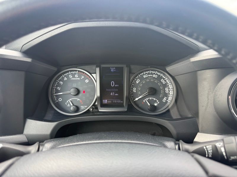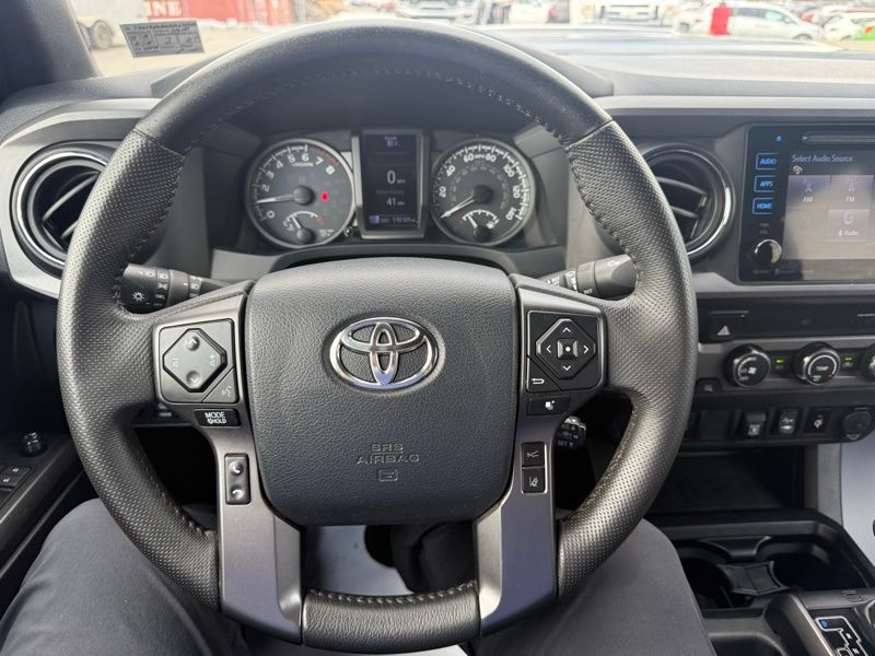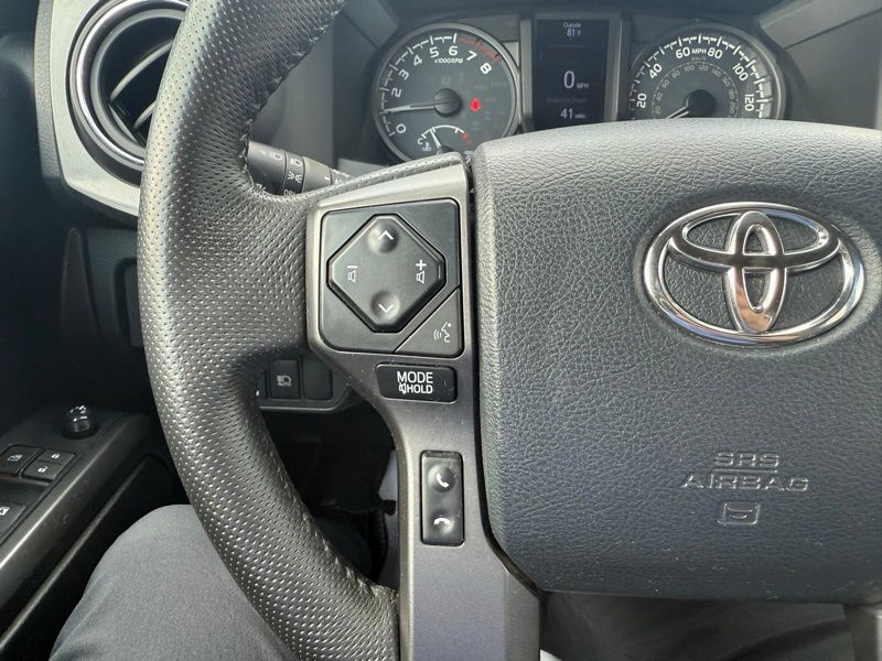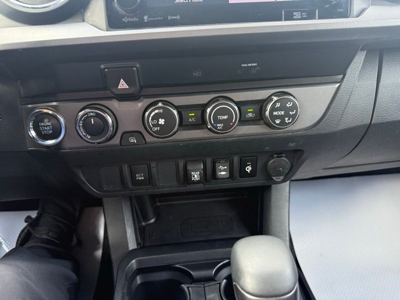 **LOCALLY OWNED TRADE-IN**, **PRE COLLISION SYSTEM**, **ADAPTIVE CRUISE CONTROL**, **LANE KEEP ASSIST**, **AUTO HEAD LIGHTS**, **7" TOUCHSCREEN RADIO**, **FACTORY NAVIGATION**, **SMART KEY**, **POWER SLIDING REAR WINDOW**, **WIRELSS PHONE CHARGER**, **ALL WEATHER MATS**, **17" ALLOY WHEEL**, **BACK UP CAMERA**, **BLUETOOTH**, 4WD, 120V/400W Deck Mounted AC Power, ABS brakes, Alloy wheels, Anti-whiplash front head restraints, Auto-Dimming Inside Rear-View Mirror w/Compass, Brake assist, Color-Keyed Overfenders, Dual front impact airbags, Dual front side impact airbags, Electronic Stability Control, Engine Immobilizer, Front anti-roll bar, Front wheel independent suspension, Illuminated entry, Knee airbag, LED Daytime Running Lamps, Low tire pressure warning, Occupant sensing airbag, Overhead airbag, Power Sliding Rear Window w/Privacy Glass, Remote keyless entry, Remote Keyless Entry System, Smart Key w/Push Button Start, Traction control, Variable Intermittent Wipers, Wide Angle Front Fog Lamps. Magnetic Gray Metallic 2019 Toyota Tacoma TRD Sport V6 4WD 6-Speed Automatic 3.5L V6 PDI DOHC 24V LEV3-ULEV70 278hp