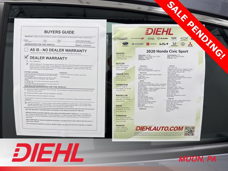 If you're looking for a sedan that's stylish, fuel-friendly, and genuinely enjoyable to live with, this 2020 Honda Civic EX is waiting at Diehl of Moon. Come take it for a spin...cars with this much charm tend not to wait around.