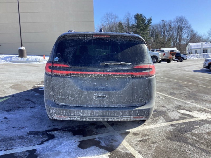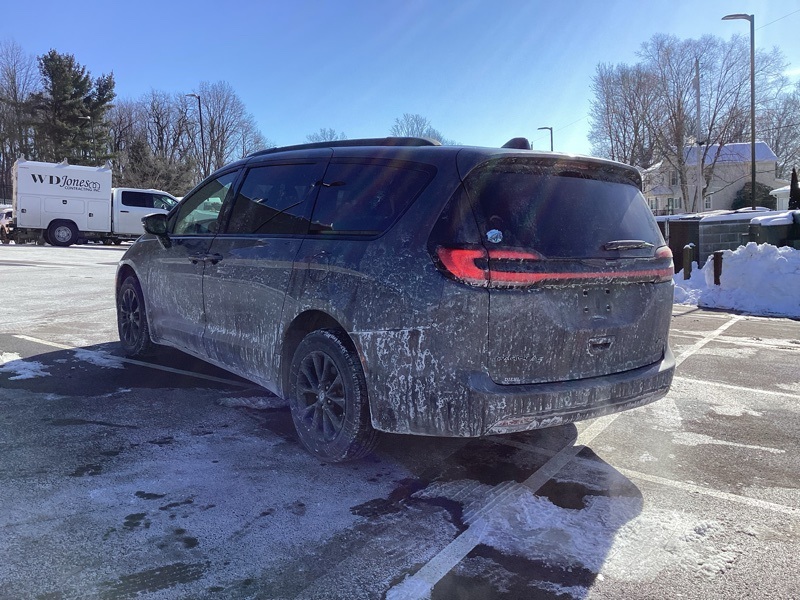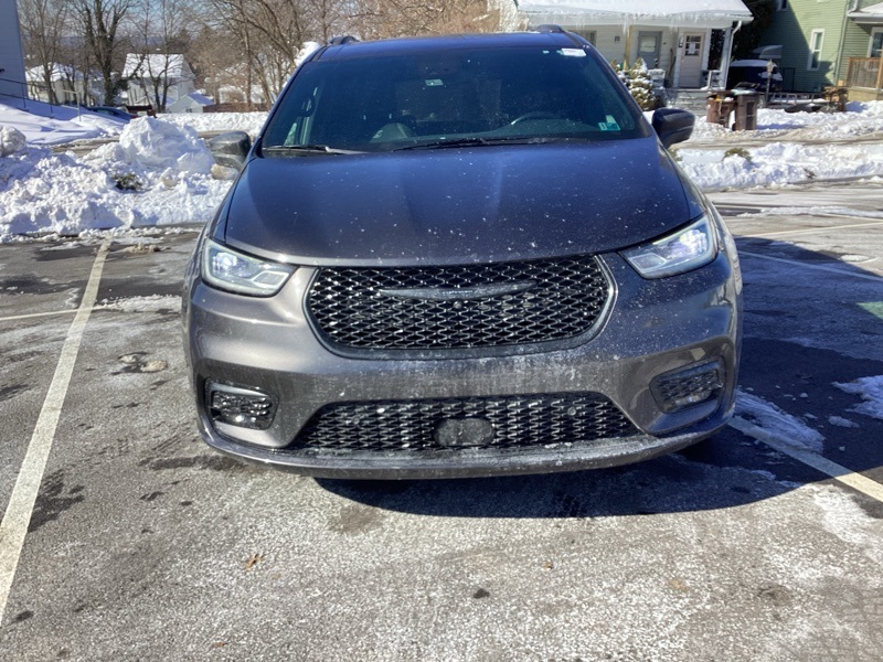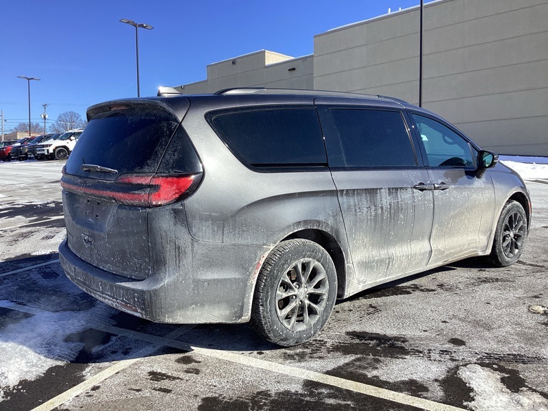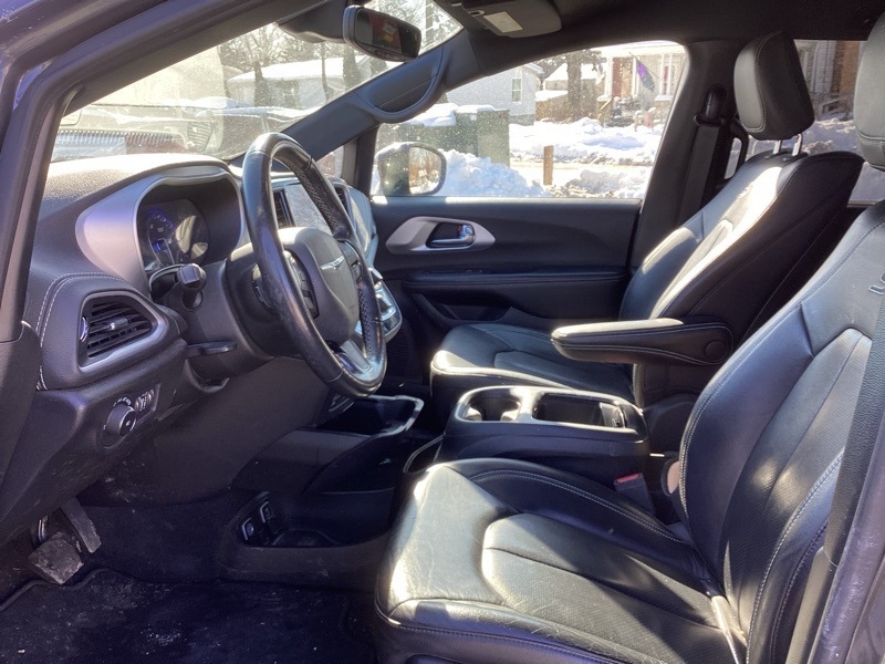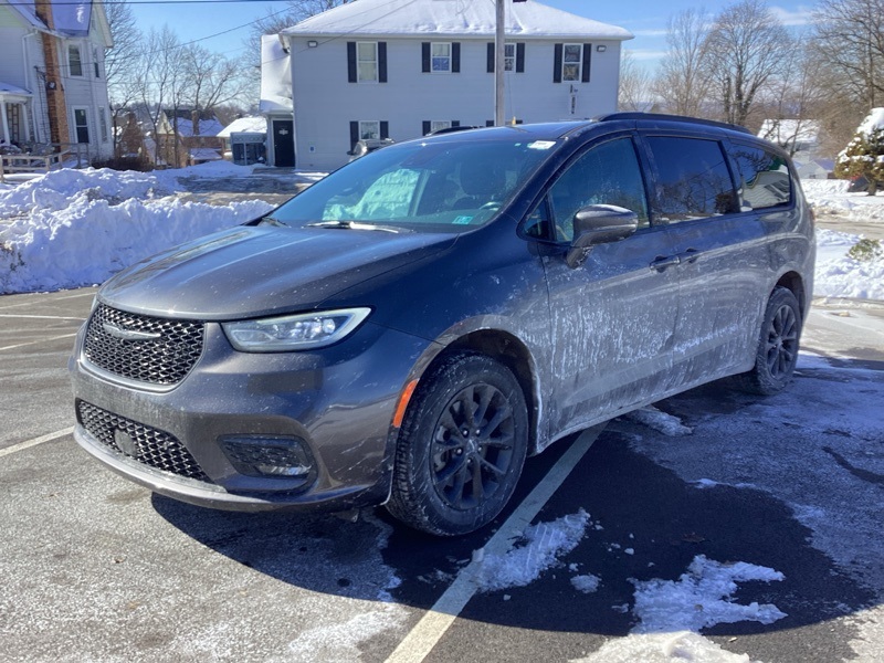 1-Year Trial (Registration Required), 10.1" Touchscreen Display, 115V Auxiliary Power Outlet, 13 Alpine Speakers, 220 Amp Alternator, 3-Channel Video Remote Control, 3-Channel Wireless Headphones (RF), 3.73 Axle Ratio, 360 Surround View Camera System, 3rd row seats: split-bench, 3rd Row USB Charge Port, 4-Wheel Disc Brakes, 4G LTE Wi-Fi Hot Spot, 506 Watt Amplifier, 6 Speakers, ABS brakes, Air Conditioning, Alloy wheels, AM/FM radio: SiriusXM, Anodized Ice Cave Accents, Anodized Ink Badging, Apple CarPlay, Apple CarPlay/Android Auto, Auto-dimming Rear-View mirror, Automatic temperature control, AWD Suspension, Black Day Light Opening Moldings, Black Seats, Black Stow N Place Roof Rack, Blu-Ray/DVD Player/USB Port, Body Color Door Handles, Brake assist, Bumpers: body-color, Compass, Connected Travel & Traffic Services, Delay-off headlights, Deluxe Insulation Group, Disassociated Touchscreen Display, Driver door bin, Driver vanity mirror, Driver's Seat Mounted Armrest, Dual front impact airbags, Dual front side impact airbags, Electronic Stability Control, Famcam Interior Camera, Four wheel independent suspension, Front anti-roll bar, Front Bucket Seats, Front dual zone A/C, Front Fascia Air Deflectors, Front fog lights, Front Passenger Auto Advance N Return, Front reading lights, Front/Rear 1-Touch Up/Down Power Windows, Fully automatic headlights, Garage door transmitter: HomeLink, Global Telematics Box Module (TBM), Google Android Auto, GPS Antenna Input, GPS Navigation, Hands Free Power Liftgate, Hands Free Sliding Doors, HD Radio, Heated door mirrors, Heated front seats, Heated Second Row Seats, Heated steering wheel, High Definition Multimedia Interface, Illuminated entry, Instrument Panel Anodized Silver Bezel, Integrated Active Noise Cancellation, Integrated Center Stack Radio, Integrated Voice Command w/Bluetooth, KeySense, Knee airbag, Leather steering wheel, Low tire pressure warning, Memory seat, Occupant sensing airbag, Outside temperature display, Overhead airbag, Overhead console, Panic alarm, Parallel & Perp Park Assist w/Stop, ParkSense Front/Rear Park Assist w/Stop, ParkView Rear Back-Up Camera, Passenger door bin, Passenger seat mounted armrest, Passenger vanity mirror, Perforated Leather Bucket Seats w/S Logo, Perforated Leather Trim Bucket Seats, Piano Black Interior Accents, Power Adjust 8-Way Front Passenger Seat, Power door mirrors, Power driver seat, Power Liftgate, Power Passenger Lumbar Adjust, Power steering, Power windows, Premium & Safety Sphere Group, Premium Fascia Upper/Lower Grille w/Black Surround, Premium Rear Fascia Black, Quick Order Package 27L, Radio data system, Radio: Uconnect 5 Nav w/10.1" Display, Radio: Uconnect 5 w/10.1" Display, Rain sensing wipers, Rear air conditioning, Rear reading lights, Rear window defroster, Rear window wiper, Reclining 3rd row seat, Remote keyless entry, Roof rack, S Appearance Package, S Badge, Seatback Video Screens, Security system, SiriusXM Guardian - Included Trial (B), SiriusXM Satellite Radio, SiriusXM w/360L, Speed control, Split folding rear seat, Spoiler, Steering wheel mounted audio controls, Stow N Vac Integrated Vacuum, Tachometer, Telescoping steering wheel, Tilt steering wheel, Traction control, Trip computer, Turn signal indicator mirrors, Uconnect Theater Family Group, USB Host Flip, Variably intermittent wipers, Video USB Port, Voltmeter, Wheels: 18" x 7.5" S-Model Aluminum Design 2. Granite Crystal Metallic Clearcoat 2021 Chrysler Pacifica Touring L AWD 9-Speed 948TE Automatic 3.6L V6 24V VVT