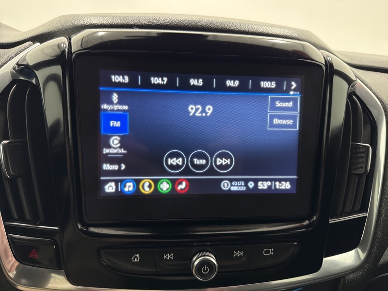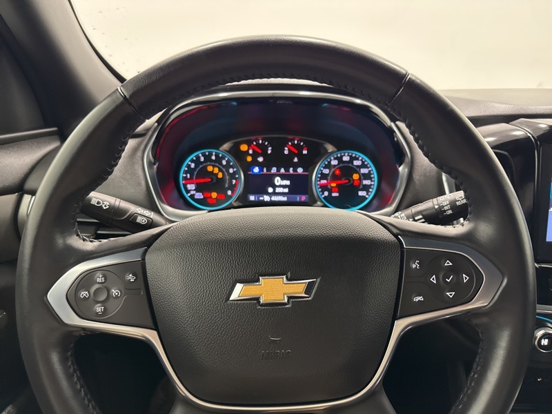 Inside, this 2022 Chevrolet Traverse LT offers versatile seating with second row captains chairs and a third row that makes carpooling or family road trips easy. Cloth seating surfaces, a power driver seat with lumbar support, leather wrapped steering wheel, and multi zone climate control keep everyone comfortable. Keyless start, remote engine start, power liftgate, and cruise control make everyday driving effortless.