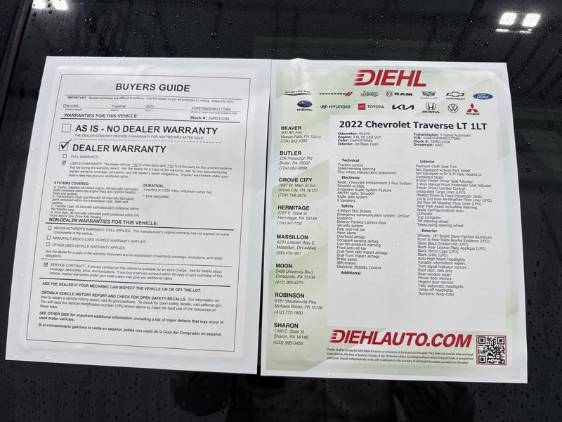 Most importantly, this Chevrolet Traverse is Diversified Certified. That means it comes with a 3 month or 3,000 mile Extended Care Limited Warranty, a 125 point inspection, 24 hour roadside assistance, and a vehicle history report. Diversified Certified gives you extra confidence and coverage designed to keep you moving forward.