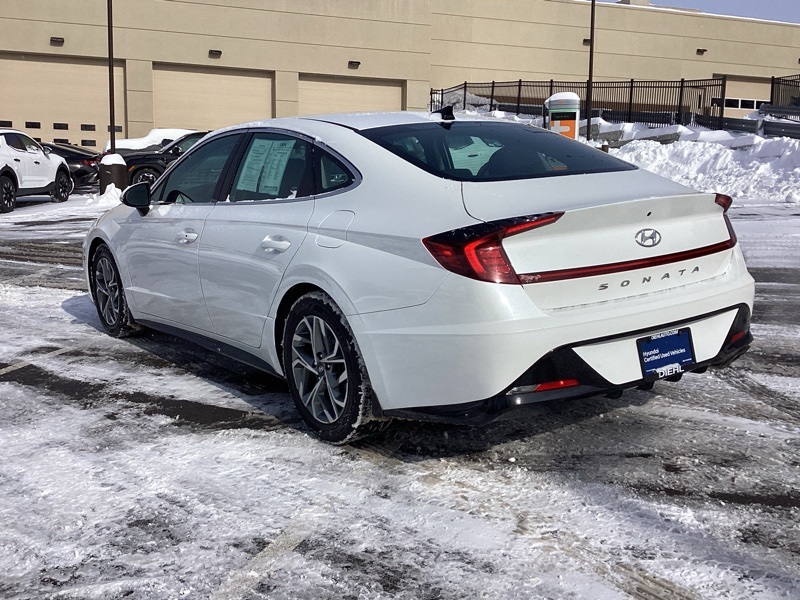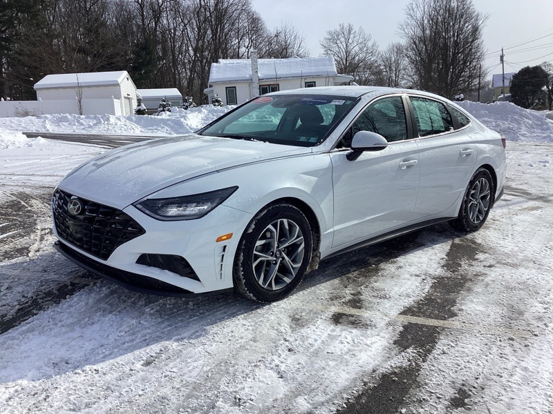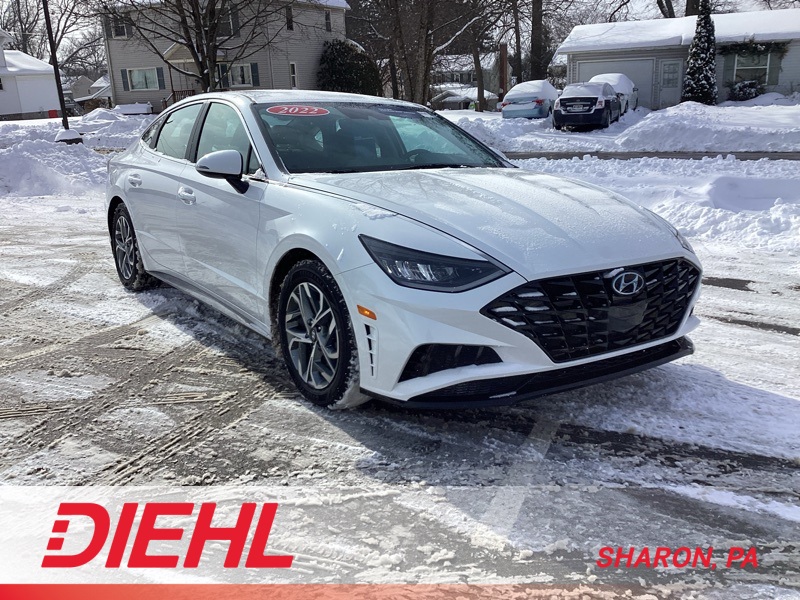 Black Cloth, 17" x 7.0J Aluminum Alloy Wheels, 4-Wheel Disc Brakes, 6 Speakers, ABS brakes, Air Conditioning, Alloy wheels, AM/FM radio: SiriusXM, Apple CarPlay & Android Auto, Auto High-beam Headlights, Automatic temperature control, Brake assist, Bumpers: body-color, Cargo Net, Carpeted Floor Mats, Delay-off headlights, Driver door bin, Driver vanity mirror, Dual front impact airbags, Dual front side impact airbags, Electronic Stability Control, Emergency communication system: Blue Link Connected Car Service (3-year complimentary subscription), Exterior Parking Camera Rear, First Aid Kit, Four wheel independent suspension, Front anti-roll bar, Front Bucket Seats, Front Center Armrest, Front dual zone A/C, Front reading lights, Fully automatic headlights, Heated door mirrors, Heated Front Bucket Seats, Heated front seats, Illuminated entry, Knee airbag, Low tire pressure warning, Mud Guards, Occupant sensing airbag, Option Group 01, Outside temperature display, Overhead airbag, Overhead console, Panic alarm, Passenger door bin, Passenger vanity mirror, Power door mirrors, Power driver seat, Power steering, Power windows, Premium Cloth Seating Surfaces, Radio data system, Radio: AM/FM/MP3/HD/SiriusXM Display Audio, Rear anti-roll bar, Rear seat center armrest, Rear side impact airbag, Rear window defroster, Remote keyless entry, Security system, Speed control, Speed-sensing steering, Speed-Sensitive Wipers, Split folding rear seat, Steering wheel mounted audio controls, Tachometer, Telescoping steering wheel, Tilt steering wheel, Traction control, Trip computer, Turn signal indicator mirrors, Variably intermittent wipers, Wheel Locks. Quartz White 2022 Hyundai Sonata SEL FWD 8-Speed Automatic with SHIFTRONIC 2.5L I4
