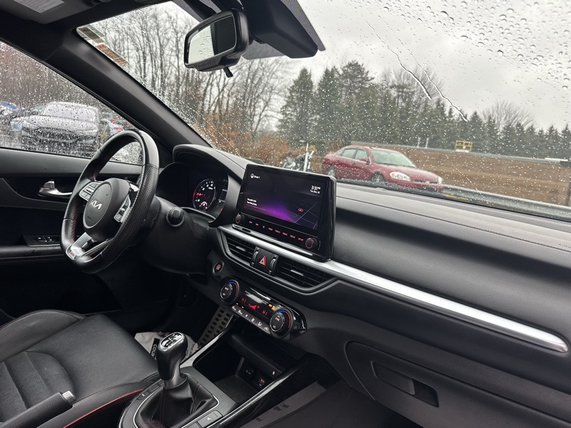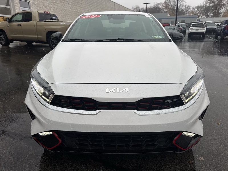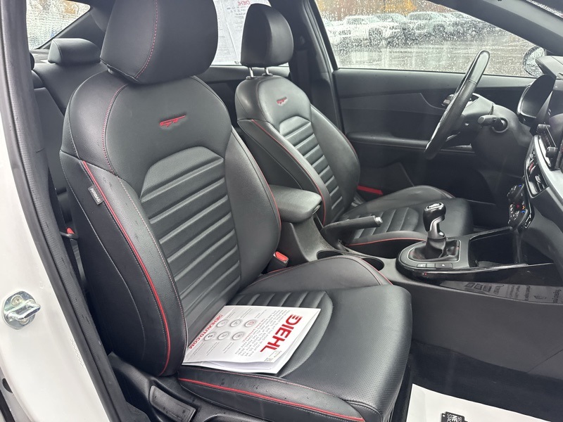 Snow White Pearl 2022 Kia Forte GT 4D Sedan FWD 1.6L 4-Cylinder 6-Speed Manual Forte GT, 6-Speed Manual, 4-Wheel Disc Brakes, ABS brakes, Apple CarPlay & Android Auto, Automatic temperature control, Front dual zone A/C, Heated front seats, Low tire pressure warning, Navigation System, Power moonroof, Remote keyless entry, Steering wheel mounted audio controls, Tachometer, Telescoping steering wheel, 8 Speakers, Air Conditioning, Alloy wheels, AM/FM radio: SiriusXM, Auto High-beam Headlights, Brake assist, Bumpers: body-color, Cargo Mat, Carpet Floor Mat, Delay-off headlights, Driver door bin, Driver vanity mirror, Dual front impact airbags, Dual front side impact airbags, Electronic Stability Control, Emergency communication system: UVO eServices, Exterior Parking Camera Rear, Four wheel independent suspension, Front anti-roll bar, Front Bucket Seats, Front Center Armrest, Front fog lights, Front reading lights, Fully automatic headlights, Heated door mirrors, Heated Front Sport Seats, Illuminated entry, Leather Shift Knob, Leather steering wheel, Occupant sensing airbag, Outside temperature display, Overhead airbag, Overhead console, Panic alarm, Passenger door bin, Passenger vanity mirror, Power door mirrors, Power steering, Power windows, Radio data system, Radio: harman/kardon Premium Audio System, Rear anti-roll bar, Rear reading lights, Rear seat center armrest, Rear window defroster, Security system, Speed control, Split folding rear seat, Spoiler, Sport steering wheel, SynTex Seat Trim, Tilt steering wheel, Traction control, Trip computer, Turn signal indicator mirrors, Variably intermittent wipers, Wheel Locks, and Wheels: 18" Machine Finish Alloy. Odometer is 2291 miles below market average! 22/31 City/Highway MPG