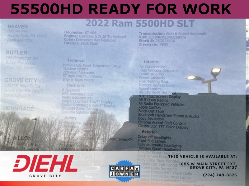 Delmonico Red Pearlcoat 2022 Ram 5500HD SLT 4D Crew Cab 4WD Cummins 6.7L I6 Turbodiesel Aisin 6-Speed Automatic