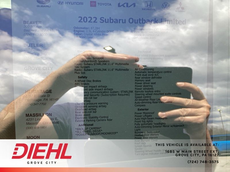 Crystal White Pearl 2022 Subaru Outback Limited 4D Sport Utility AWD 2.5L 4-Cylinder DOHC 16V CVT Lineartronic