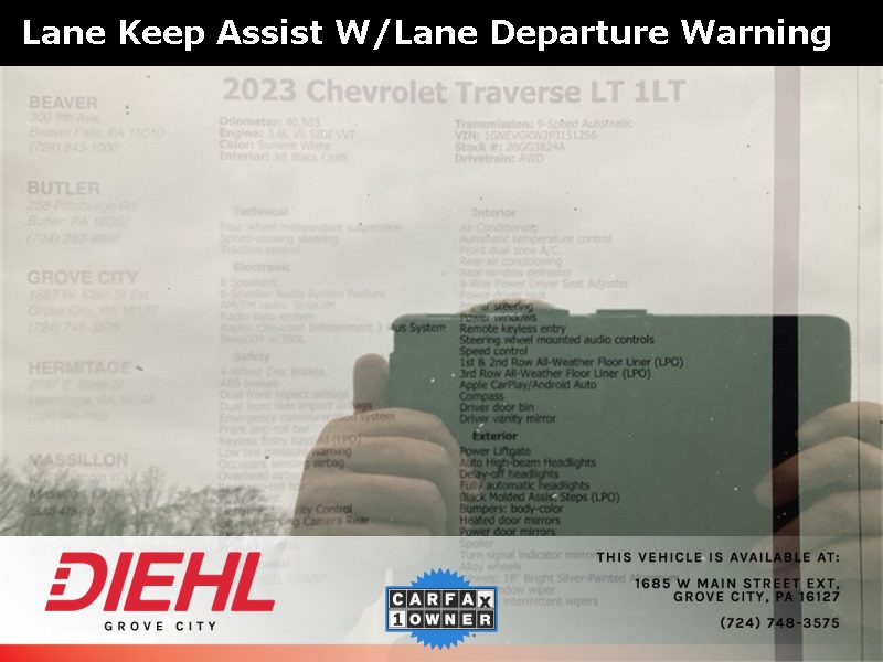 Summit White 2023 Chevrolet Traverse LT 4D Sport Utility AWD 3.6L V6 SIDI VVT 9-Speed Automatic