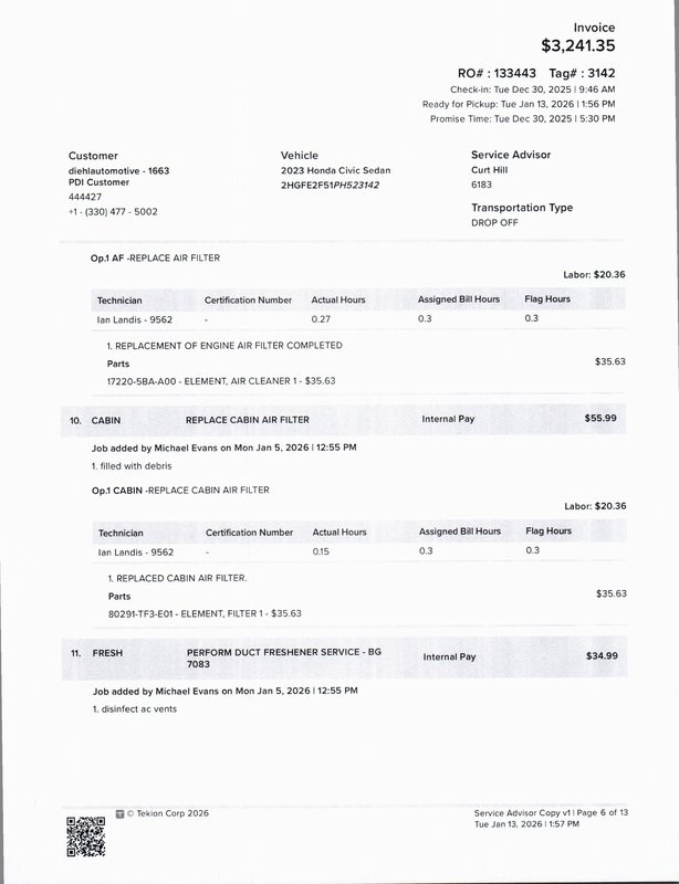 - Cabin air filter