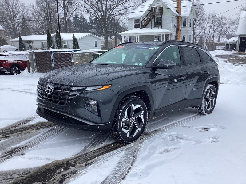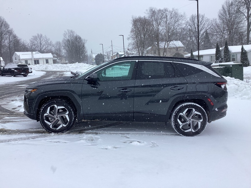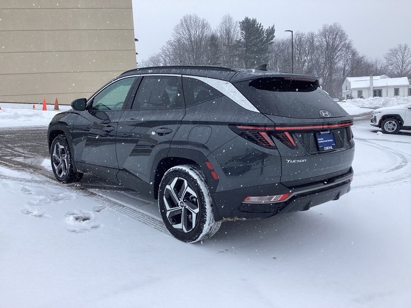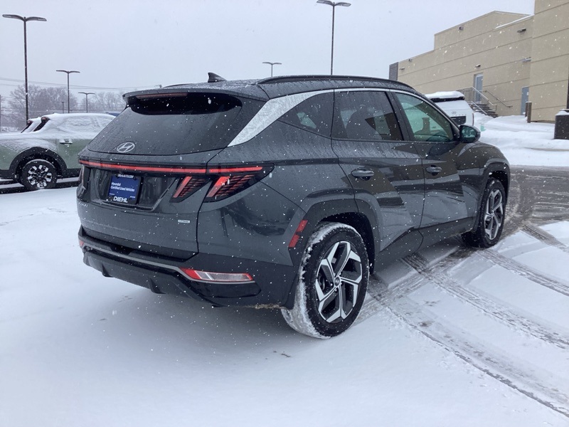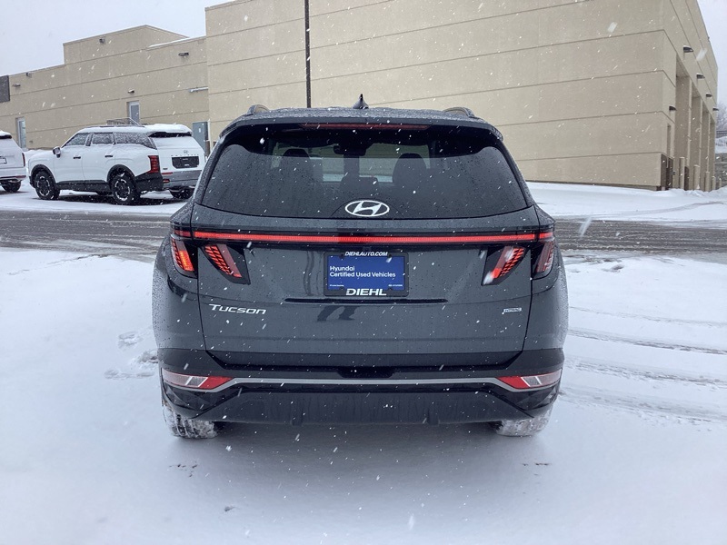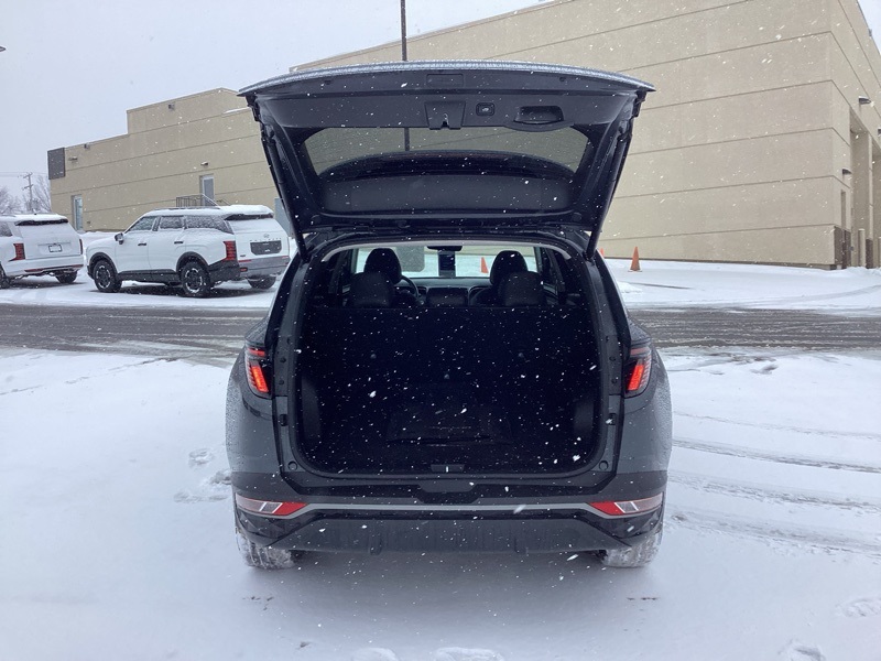 AWD, 10.25" Digital Instrument Cluster, 3.648 Axle Ratio, 4-Wheel Disc Brakes, 6 Speakers, ABS brakes, Air Conditioning, Alloy wheels, AM/FM radio: SiriusXM, Apple CarPlay & Android Auto, Auto High-beam Headlights, Auto-Dimming Interior Mirror w/Homelink, Brake assist, Bumpers: body-color, Cargo Cover, Cargo Net, Cargo Tray, Carpeted Floor Mats, Convenience Package, Delay-off headlights, Driver door bin, Driver vanity mirror, Dual Automatic Temperature Control, Dual front impact airbags, Dual front side impact airbags, Electronic Stability Control, Emergency communication system: Blue Link Connected Car Service (3-year complimentary subscription), First Aid Kit, Four wheel independent suspension, Front and Rear Mudguards, Front anti-roll bar, Front Bucket Seats, Front Center Armrest, Front reading lights, Fully automatic headlights, H-Tex Seat Trim, Heated door mirrors, Heated Front Bucket Seats, Heated front seats, Illuminated entry, Leather-Wrapped Shift Knob, Leather-Wrapped Steering Wheel, LED Interior Lights (Room, Map), Low tire pressure warning, Occupant sensing airbag, Option Group 02, Outside temperature display, Overhead airbag, Overhead console, Panic alarm, Passenger door bin, Passenger vanity mirror, Power door mirrors, Power driver seat, Power Liftgate, Power steering, Power Sunroof, Power windows, Radio data system, Radio: AM/FM/HD/SiriusXM Audio System, Rear anti-roll bar, Rear seat center armrest, Rear window defroster, Rear window wiper, Remote keyless entry, Roof rack: rails only, Security system, Speed control, Split folding rear seat, Spoiler, Stain & Odor Resistant Cloth Seat Trim, Steering wheel mounted audio controls, Tachometer, Telescoping steering wheel, Tilt steering wheel, Traction control, Trip computer, Turn signal indicator mirrors, Ultrasonic Rear Occupant Alert, Variably intermittent wipers, Wheels: 19" x 7.5J" Machine-Face Finish Alloy. Certified. Portofino Gray 2023 Hyundai Tucson SEL AWD 8-Speed Automatic with SHIFTRONIC 2.5L I4 DGI DOHC 16V LEV3-ULEV70 187hp