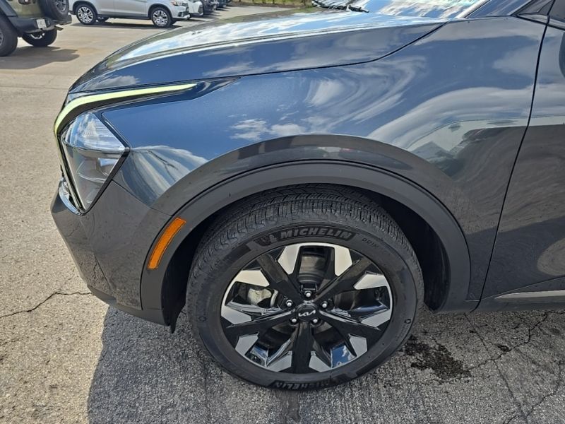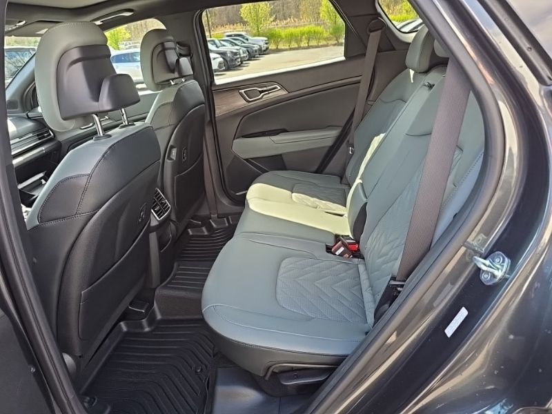 The Sportage X-Line's striking exterior is complemented by the Gravity Gray color and the premium X-Line features, including the Sage Green Interior Color Package and the X-Line Premium Package, which adds a Panoramic Sunroof, Smart Power Liftgate, and LED Interior Lighting.