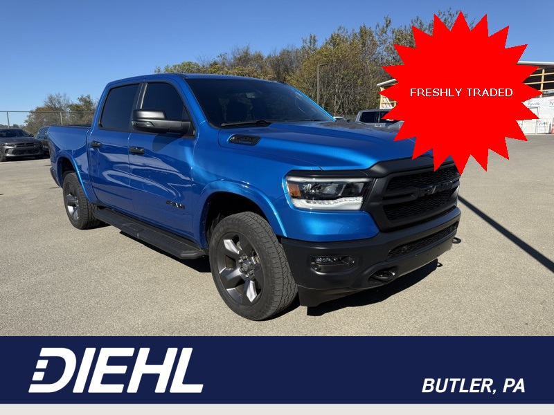 **BLUETOOTH HANDS FREE PHONE**, **BACK-UP CAMERA**, **BUILT TO SERVE EDITION**, **8.4" TOUCHSCREEN RADIO**, **HEATED STEERING WHEEL**, **FACTORY REMOTE START**, **HEATED FRONT SEATS**, **APPLE CARPLAY / ANDROID AUTO**, **5.7L V8 HEMI**, **BIGHORN LEVEL 2**, **FRONT AND REAR PARKING SONAR**, 115V Auxiliary Power Outlet, 2nd Row In Floor Storage Bins, 3 Rear Seat Head Restraints, 4 Way Front Headrests, 4-Wheel Disc Brakes, 400W Inverter, 48V Belt Starter Generator, 4G LTE Wi-Fi Hot Spot, 6 Speakers, 8.4" Touchscreen Display, 9 Amplified Speakers w/Subwoofer, ABS brakes, Air Conditioning, Air Conditioning ATC w/Dual Zone Control, Alloy wheels, AM/FM radio, Apple CarPlay, Auto-Dimming Exterior Driver Mirror, Auto-Dimming Rear-View Mirror, Big Horn Badge, Big Horn Level 2 Equipment Group (DISC), Black Exterior Mirrors, Black Premium Power Mirrors, Bluetooth Handsfree Phone & Audio, Brake assist, Bumpers: chrome, Class IV Receiver Hitch, Cloth Bench Seat, Cluster 7.0" TFT Color Display, Compass, Connectivity - US/Canada, Convex Wide-Angle Exterior Mirror Insert, Delay-off headlights, Driver door bin, Dual front impact airbags, Dual front side impact airbags, E-Locker Rear Axle, Electric Shift-On-Demand Transfer Case, Electronic Stability Control, Emergency communication system: SiriusXM Guardian, Exterior Mirrors Courtesy Lamps, Exterior Mirrors w/Heating Element, Exterior Mirrors w/Supplemental Signals, For Details, Visit DriveUconnect.com, For More Info, Call 800-643-2112, Front anti-roll bar, Front Center Armrest w/Storage, Front Fog Lamps, Front reading lights, Front Seat Back Map Pockets, Front wheel independent suspension, Fully automatic headlights, Global Telematics Box Module (TBM), Glove Box Lamp, Google Android Auto, GPS Antenna Input, Heated door mirrors, Heated Front Seats, Heated Steering Wheel, Illuminated entry, Integrated Center Stack Radio, Integrated Voice Command w/Bluetooth, Leather steering wheel, LED Footwell Lighting, Low tire pressure warning, Media Hub w/2 Charge Only USBs, Mopar Black Tubular Side Steps, MOPAR Front & Rear Rubber Floor Mats, Occupant sensing airbag, Outside temperature display, Overhead airbag, Overhead console, Panic alarm, ParkSense Front/Rear Park Assist w/Stop, ParkView Rear Back-Up Camera, Passenger door bin, Passenger vanity mirror, Power 2-Way Driver Lumbar Adjust, Power 8-Way Driver Seat, Power Adjustable Pedals, Power door mirrors, Power steering, Power windows, Power-Folding Mirrors, Quick Order Package 27Z Big Horn, Radio data system, Radio: Uconnect 3 w/5" Display, Radio: Uconnect 5 W w/8.4" Display, RAM Tow Assist Kit, Rear 60/40 Folding Seat, Rear anti-roll bar, Rear Dome w/On/Off Switch Lamp, Rear Power Sliding Window, Rear seat center armrest, Rear Window Defroster, Remote keyless entry, Remote Start System, Security Alarm, SiriusXM Satellite Radio, Speed control, Split folding rear seat, Steering wheel mounted audio controls, Sun Visors w/Illuminated Vanity Mirrors, Tachometer, Telescoping steering wheel, Tilt steering wheel, Traction control, Trip computer, Universal Garage Door Opener, USB Host Flip, Voltmeter, Wheels: 20" x 9.0" Premium Paint/Polished. CARFAX One-Owner. Clean CARFAX. Certified. FCA US LLC Certified Pre-Owned Details: