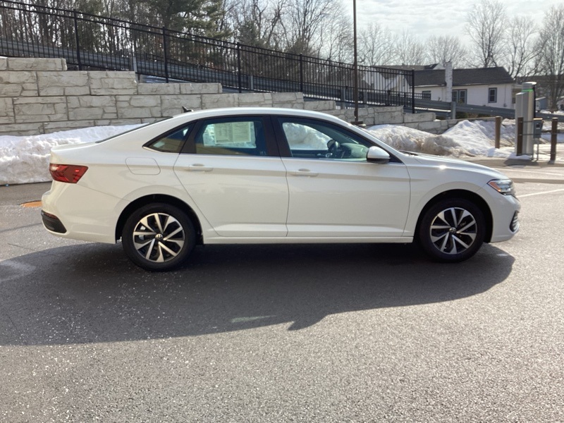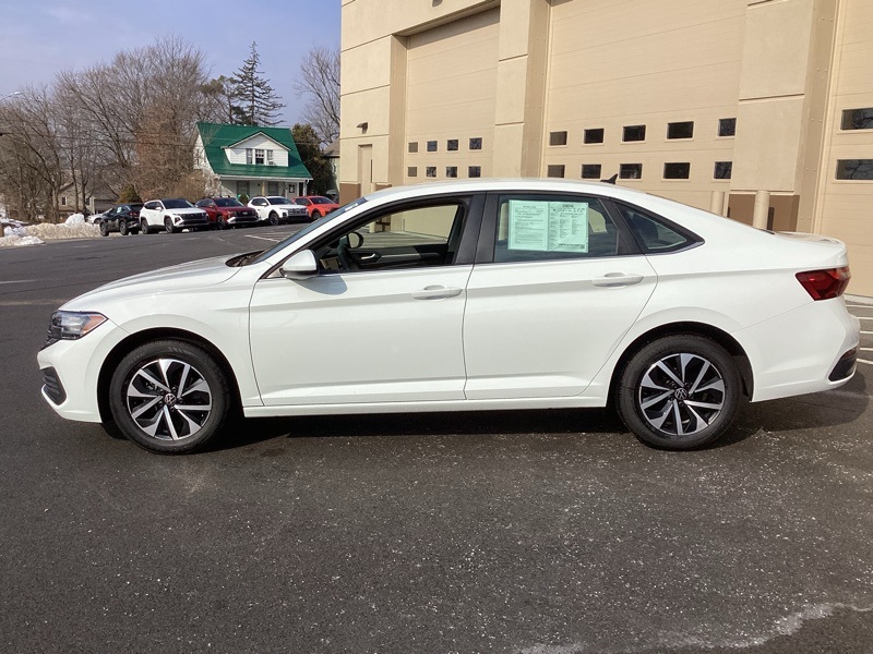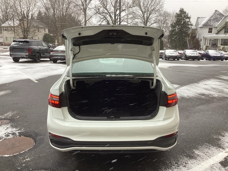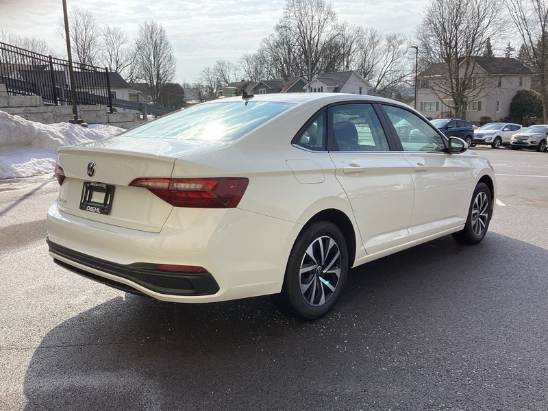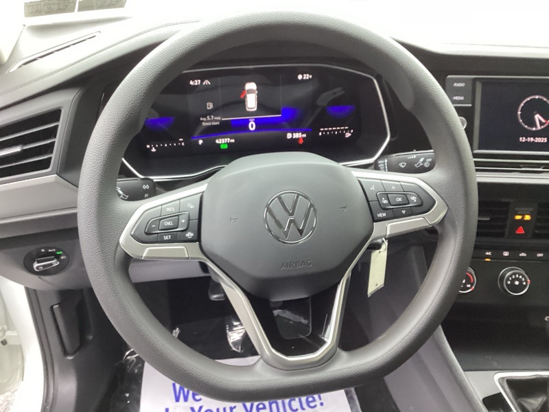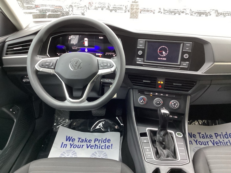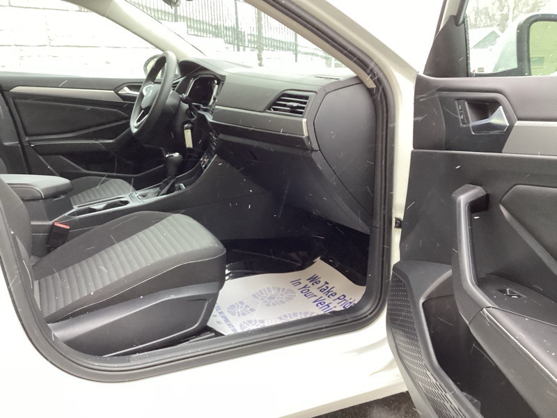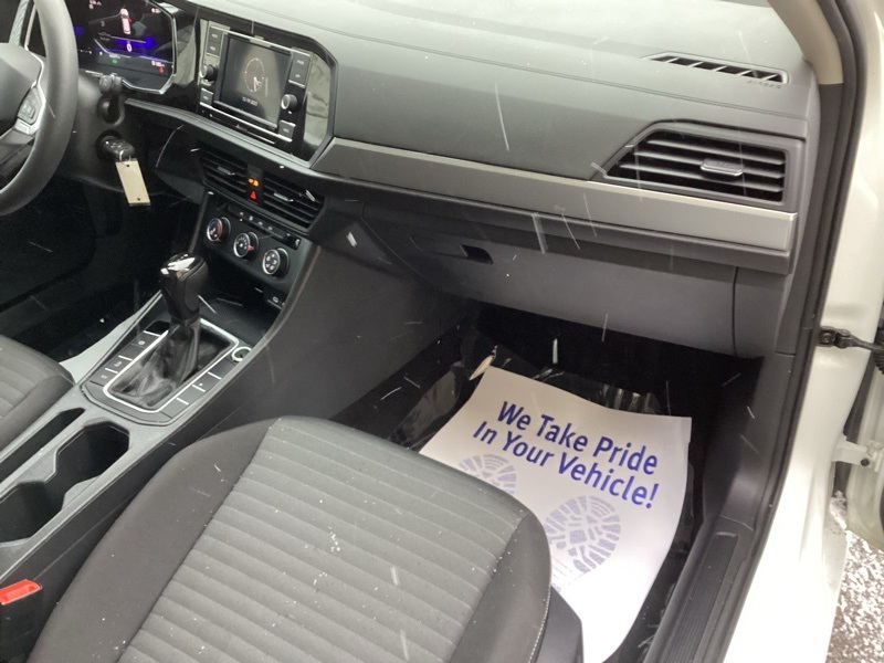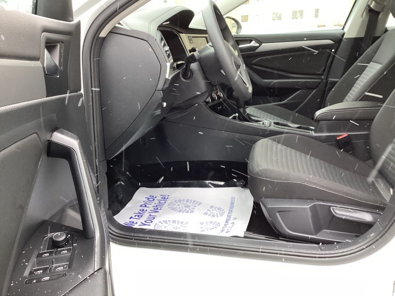 Titan Black Cloth, 4 Speakers, 4-Wheel Disc Brakes, ABS brakes, Air Conditioning, Alloy wheels, AM/FM radio, Brake assist, Bumpers: body-color, Delay-off headlights, Driver door bin, Dual front impact airbags, Dual front side impact airbags, Electronic Stability Control, Emergency communication system: VW Car-Net Safe & Secure 5-year, Exterior Parking Camera Rear, Front anti-roll bar, Front Bucket Seats, Front Center Armrest, Front Comfort Seats, Front wheel independent suspension, Fully automatic headlights, Heated door mirrors, Low tire pressure warning, Occupant sensing airbag, Overhead airbag, Panic alarm, Passenger door bin, Power door mirrors, Power steering, Power windows, Radio data system, Radio: MIB3 Composition Color w/6.5" Touchscreen, Rear anti-roll bar, Rear reading lights, Rear window defroster, Remote keyless entry, Speed control, Speed-sensing steering, Split folding rear seat, Steering wheel mounted audio controls, Telescoping steering wheel, Tilt steering wheel, Traction control, Variably intermittent wipers, Wheels: 16" 2-Tone Machined Alloy. Pure White 2023 Volkswagen Jetta 1.5T S FWD 8-Speed Automatic with Tiptronic 1.5L I-4 DI DOHC Turbocharged