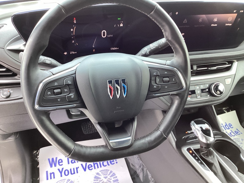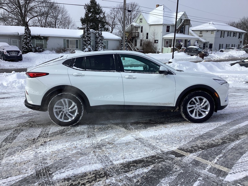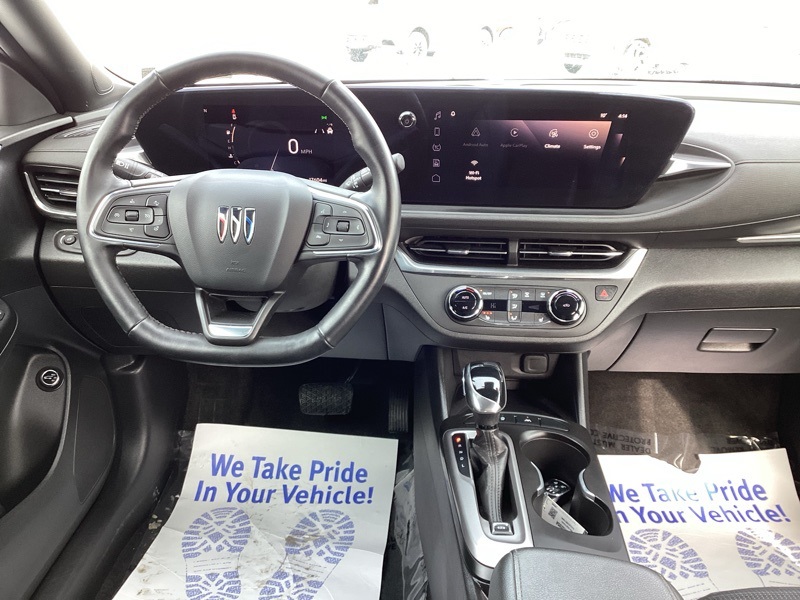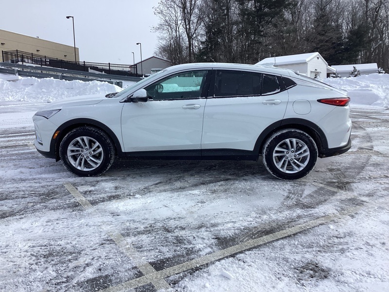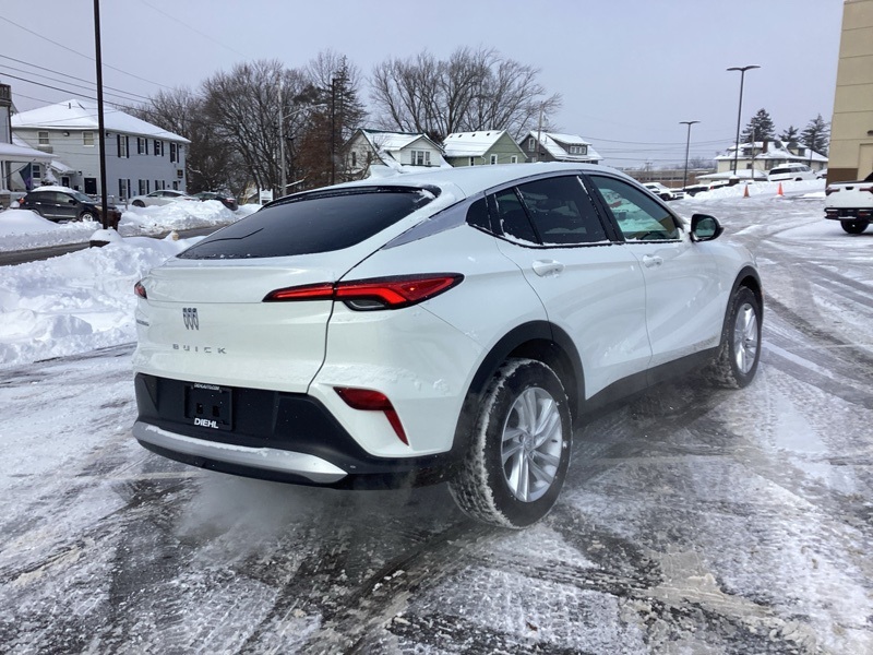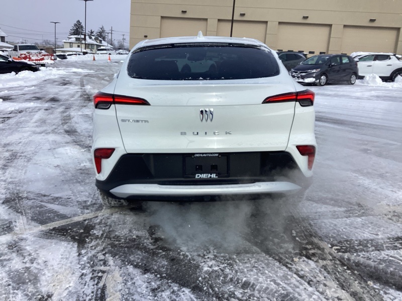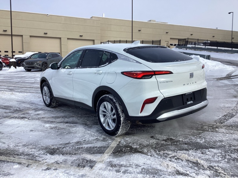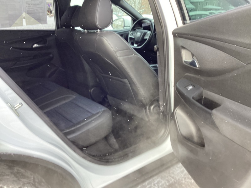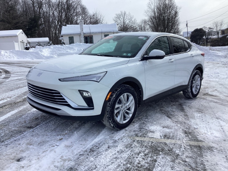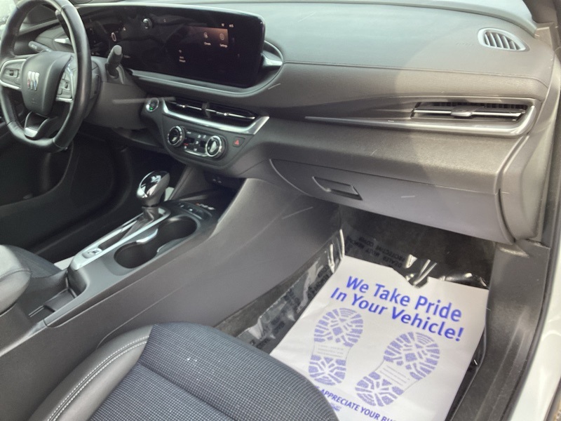 2 USB Ports (1 Type-A, 1 Type-C), 2-Way Power Driver Lumbar Control, 3.50 Final Drive Axle Ratio, 4-Way Manual Passenger Seat Adjuster, 4-Wheel Disc Brakes, 6 Speakers, 6-Way Manual Driver Seat Adjuster, 8-Way Power Driver Seat Adjuster, ABS brakes, Air Conditioning, All-Weather Floor Liners (LPO), Alloy wheels, AM/FM radio: SiriusXM, Auto High-beam Headlights, Automatic temperature control, Brake assist, Bumpers: body-color, Cloth w/Leatherette Seat Trim, Compass, Convenience I Package, Convenience II Package, Delay-off headlights, Driver door bin, Driver vanity mirror, Dual front impact airbags, Dual front side impact airbags, Electronic Stability Control, Emergency communication system: OnStar, Exterior Parking Camera Rear, Flat-Bottom Wrapped Steering Wheel, Front anti-roll bar, Front Bucket Seats, Front Center Armrest, Front Doors Keyless Open, Front Intermittent Rainsense Wipers, Front reading lights, Front wheel independent suspension, Fully automatic headlights, Heated door mirrors, Heated Driver & Front Passenger Seats, Heated Steering Wheel, Illuminated entry, Low tire pressure warning, Occupant sensing airbag, Outside temperature display, Overhead airbag, Overhead console, Panic alarm, Passenger door bin, Passenger vanity mirror, Power door mirrors, Power Liftgate, Power steering, Power windows, Preferred Equipment Group G02, Premium 6-Speaker Audio System Feature, Radio data system, Radio: AM/FM Stereo Audio System, Rear window defroster, Remote keyless entry, Remote Vehicle Starter System, Security system, Speed control, Split folding rear seat, Steering wheel mounted audio controls, Tachometer, Telescoping steering wheel, Tilt steering wheel, Traction control, Trip computer, Turn signal indicator mirrors, Variably intermittent wipers, Wheels: 17" Bright Silver Painted Aluminum, Wireless Apple CarPlay/Wireless Android Auto, Wireless Charging. Summit White 2024 Buick Envista Preferred FWD 6-Speed Automatic ECOTEC 1.2L Turbo