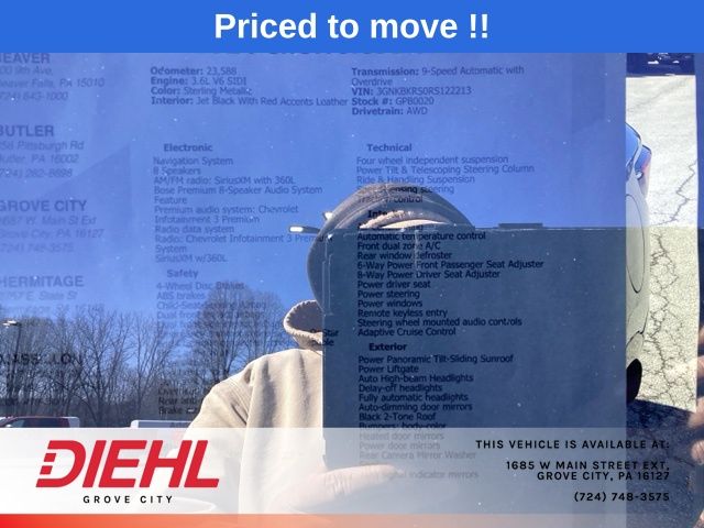 *BACK UP CAMERA*, *ALL-WHEEL DRIVE*, *POWER SUNROOF/MOONROOF*, AWD, 4-Wheel Disc Brakes, ABS brakes, Adaptive Cruise Control, Child-Seat-Sensing Airbag, Driver Confidence II Package, Dual front impact airbags, Dual front side impact airbags, Emergency communication system: OnStar and Chevrolet connected services capable, Enhanced Automatic Emergency Braking, Enhanced Convenience Package, Front anti-roll bar, HD Surround Vision, Heated Rear Outboard Seating Positions, Heated Steering Wheel, Knee airbag, Low tire pressure warning, Memory Settings For Driver Seat & Exterior Mirrors, Navigation System, Occupant sensing airbag, Overhead airbag, Power Panoramic Tilt-Sliding Sunroof, Power Tilt & Telescoping Steering Column, Preferred Equipment Group 1RS, Rear anti-roll bar, Rear Camera Mirror, Rear Camera Mirror Washer, Safety Alert Seat, Ventilated Driver & Front Passenger Seats. CARFAX One-Owner. Clean CARFAX. Priced below KBB Fair Purchase Price!