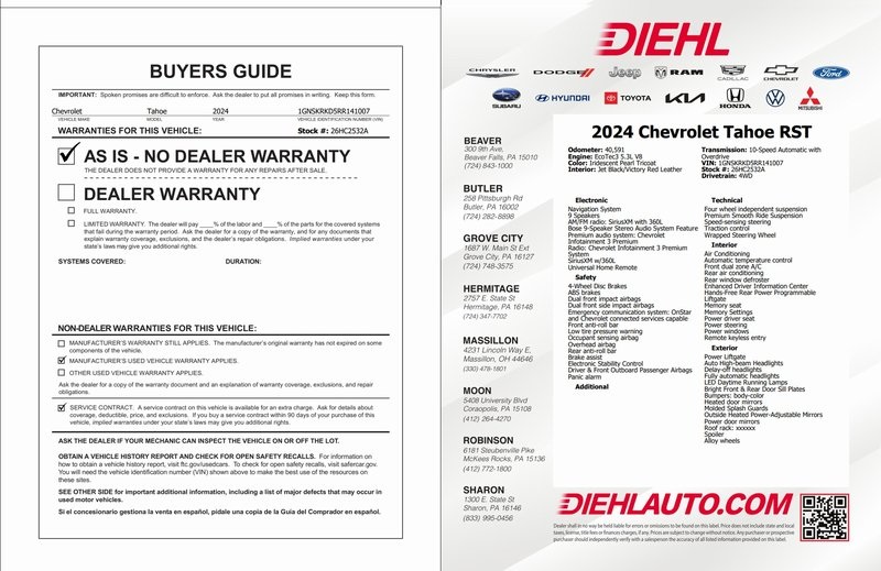 2024 Chevrolet Tahoe RST RST Iridescent Pearl Tricoat Clean CARFAX. CARFAX One-Owner. 15/20 City/Highway MPG