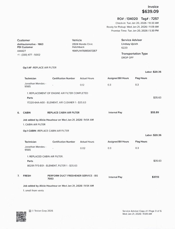 - Cabin air filter