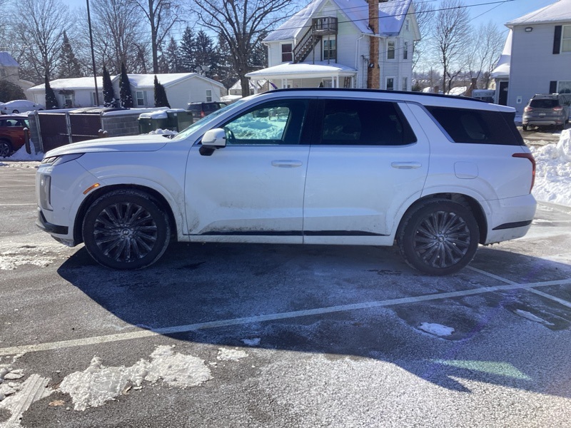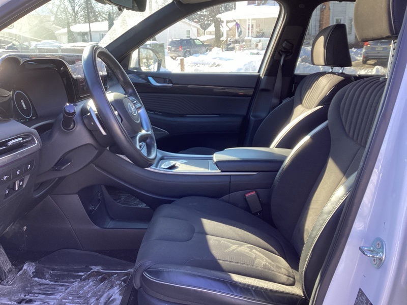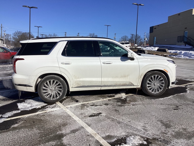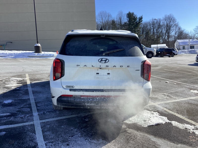 12 Speakers, 3.648 Axle Ratio, 3rd row seats: split-bench, 4-Wheel Disc Brakes, ABS brakes, Air Conditioning, All-Season Fitted Liners, Alloy wheels, AM/FM radio: SiriusXM, Apple CarPlay & Android Auto, Auto High-beam Headlights, Auto-dimming door mirrors, Auto-dimming Rear-View mirror, Auto-leveling suspension, Automatic temperature control, Brake assist, Bumper Applique, Bumpers: body-color, Cargo Net, Cargo Tray, Carpeted Floor Mats, Compass, Delay-off headlights, Driver door bin, Driver vanity mirror, Dual front impact airbags, Dual front side impact airbags, Electronic Stability Control, Emergency communication system, Exterior Parking Camera Rear, Four wheel independent suspension, Front anti-roll bar, Front Bucket Seats, Front Center Armrest, Front dual zone A/C, Front reading lights, Fully automatic headlights, Garage door transmitter: HomeLink, harman/kardon® Speakers, Heads-Up Display, Heated & Ventilated Front Bucket Seats, Heated door mirrors, Heated front seats, Heated rear seats, Heated steering wheel, Illuminated entry, Knee airbag, Low tire pressure warning, Memory seat, Microfiber Suede Seat Trim, Navigation System, Occupant sensing airbag, Option Group 01, Outside temperature display, Overhead airbag, Overhead console, Panic alarm, Passenger door bin, Passenger vanity mirror, Power door mirrors, Power driver seat, Power Liftgate, Power moonroof, Power passenger seat, Power steering, Power windows, Radio data system, Radio: AM/FM/MP3 Premium Audio System, Rain sensing wipers, Rear air conditioning, Rear anti-roll bar, Rear audio controls, Rear reading lights, Rear side impact airbag, Rear window defroster, Rear window wiper, Reclining 3rd row seat, Remote keyless entry, Roof rack, Security system, Speed control, Speed-sensing steering, Split folding rear seat, Spoiler, Steering wheel mounted audio controls, Tachometer, Telescoping steering wheel, Tilt steering wheel, Traction control, Trip computer, Turn signal indicator mirrors, Variably intermittent wipers, Ventilated front seats, Ventilated rear seats, Wheels: 20" x 7.5J Black Liquid Paint Alloy. Hyper White 2024 Hyundai Palisade Calligraphy Night Edition AWD 8-Speed Automatic with SHIFTRONIC V6