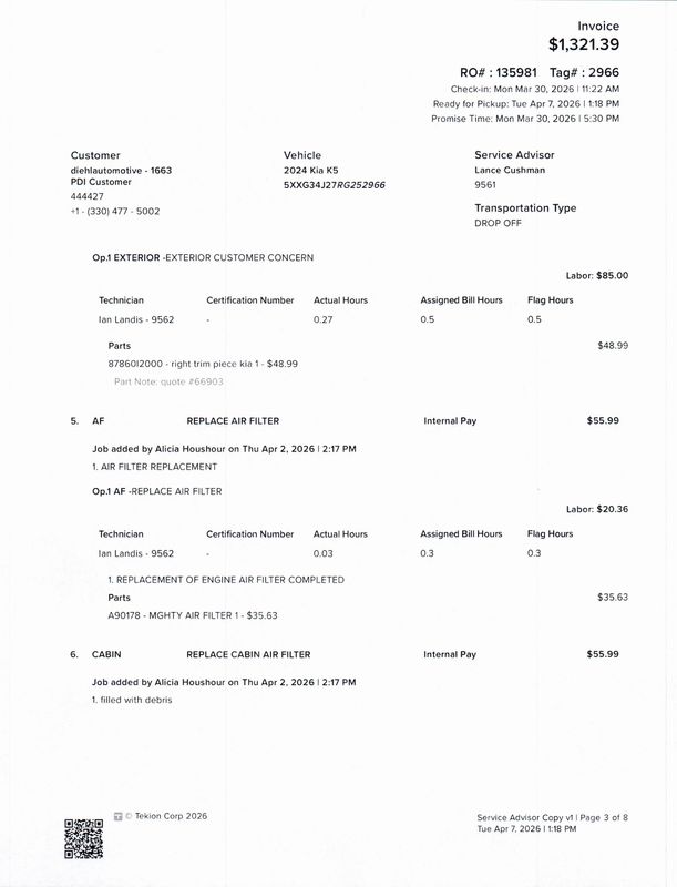 - Cabin air filter