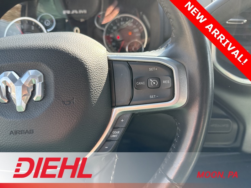 Inside, the Big Horn cabin balances rugged and comfortable in a way Ram does best. The spacious Crew Cab layout gives everyone room to stretch out, while features like keyless start, power windows and locks, cruise control, and a leather wrapped steering wheel keep daily driving relaxed and intuitive. The touchscreen infotainment system with Apple CarPlay, Android Auto, Bluetooth, and satellite radio keeps you connected, while the backup camera adds confidence when maneuvering something this capable.