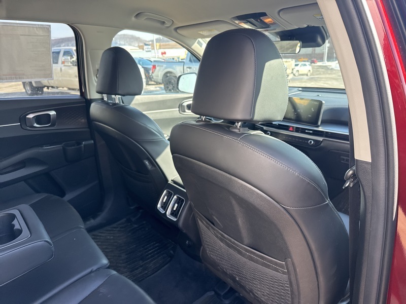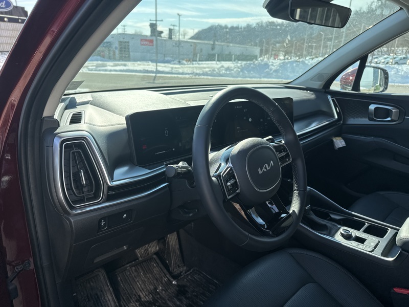 **BACK UP SENSOR**, *KEYLESS START*, **3RD ROW SEATING**, *ALL WHEEL DRIVE*, **BACK UP CAMERA**, **ANDROID AUTO**, **APPLE CAR PLAY**, **HEATED SEATS**, **LANE KEEP ASSIST**, **LEATHER**, **NAVIGATION**, **POWER DRIVERS SEAT**, AWD. Dawning Red 2025 Kia Sorento S AWD 8-Speed Automatic 2.5L I4 DGI DOHC 16V LEV3-SULEV30 191hp