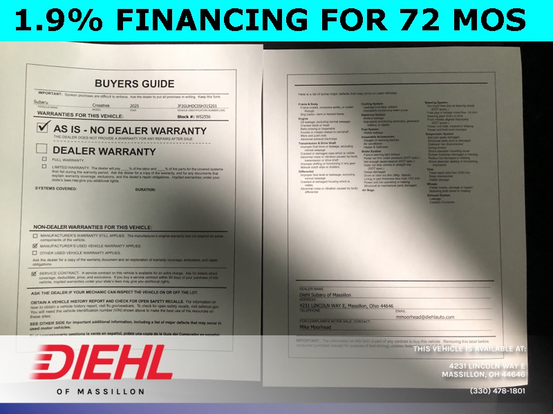 *Confirm any warranty information with dealer before purchase.Powertrain warranty