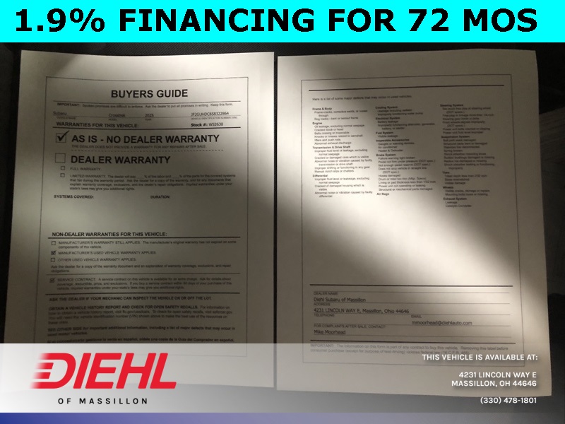 KBB Fair Market Range High: $28,460 KBB Fair Market Range Low: $26,660 Odometer is 834 miles below market average! 2025 Subaru Crosstrek Pure Red Lineartronic CVT 2.5L 4-Cylinder DOHC 16V AWD Premium 27/33 City/Highway MPG