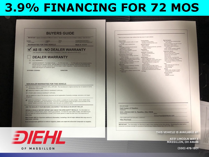 KBB Fair Market Range High: $28,330 KBB Fair Market Range Low: $21,930 Odometer is 3329 miles below market average! 2025 Subaru Legacy Crimson Red Pearl Lineartronic CVT 2.5L 4-Cylinder DOHC 16V AWD Premium 27/35 City/Highway MPG