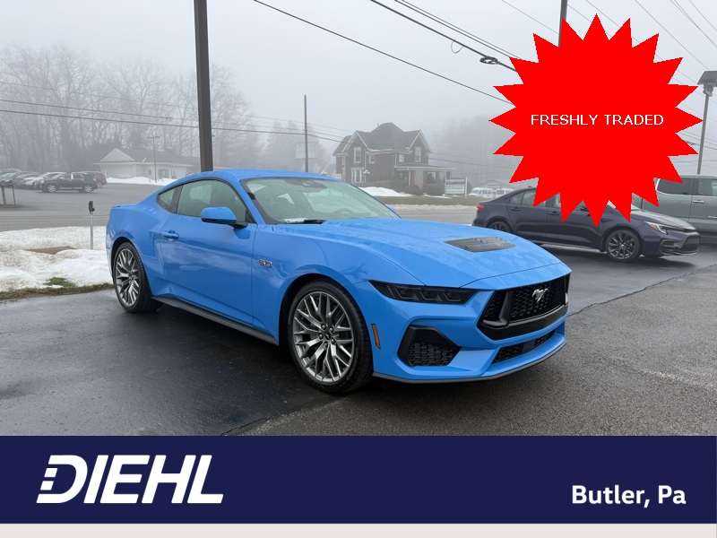 **CLEAN CARFAX ONE OWNER**, **6 SPEED MANUAL TRANSMISSION**, **GRABBER BLUE METALLIC**, **12.4 CLUSTER DISPLAY**, **13.2" TOUCHSCREEN RADIO**, **DUAL ZONE CLIMAT CONTROL**, **HEATED STEERING WHEEL**, **HEATED FRONT SEATS**, **REAR PARKING SONAR**, **ACTIVE VALVE EXHAUST**, **20" PREMIUM ALUMINUM WHEELS**, **APLLE CARPLAY / ANDROID AUTO**, **ANTI THEFT PACKAGE**, 4-Wheel Disc Brakes, ABS brakes, Brake assist, Dual front impact airbags, Dual front side impact airbags, Electronic Stability Control, Emergency communication system: 911 Assist, Front anti-roll bar, Knee airbag, Low tire pressure warning, Occupant sensing airbag, Overhead airbag, Rear anti-roll bar. Recent Arrival! CARFAX One-Owner. Clean CARFAX. Grabber Blue Metallic 2026 Ford Mustang GT RWD 6-Speed Manual 5.0L V8 Ti-VCT